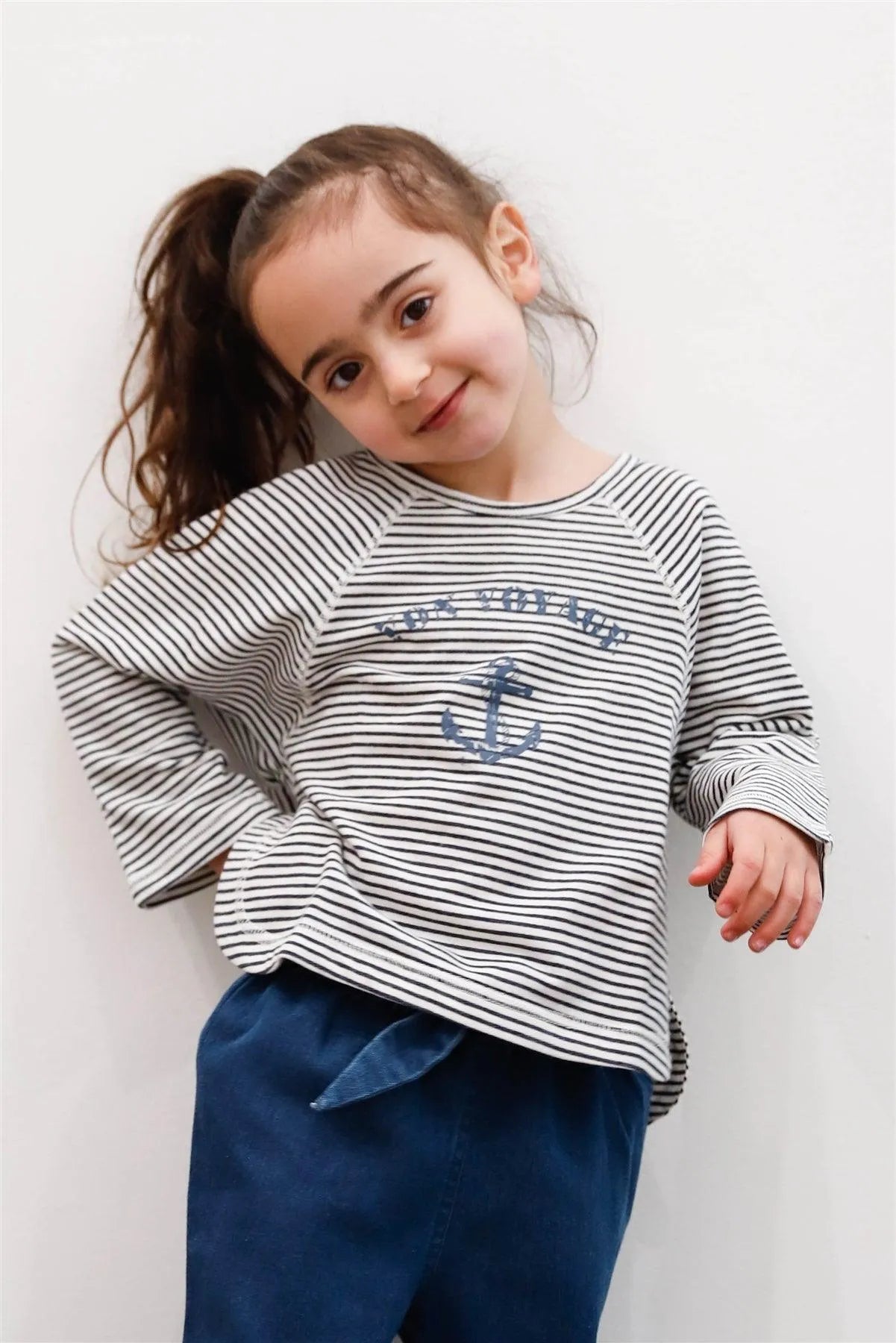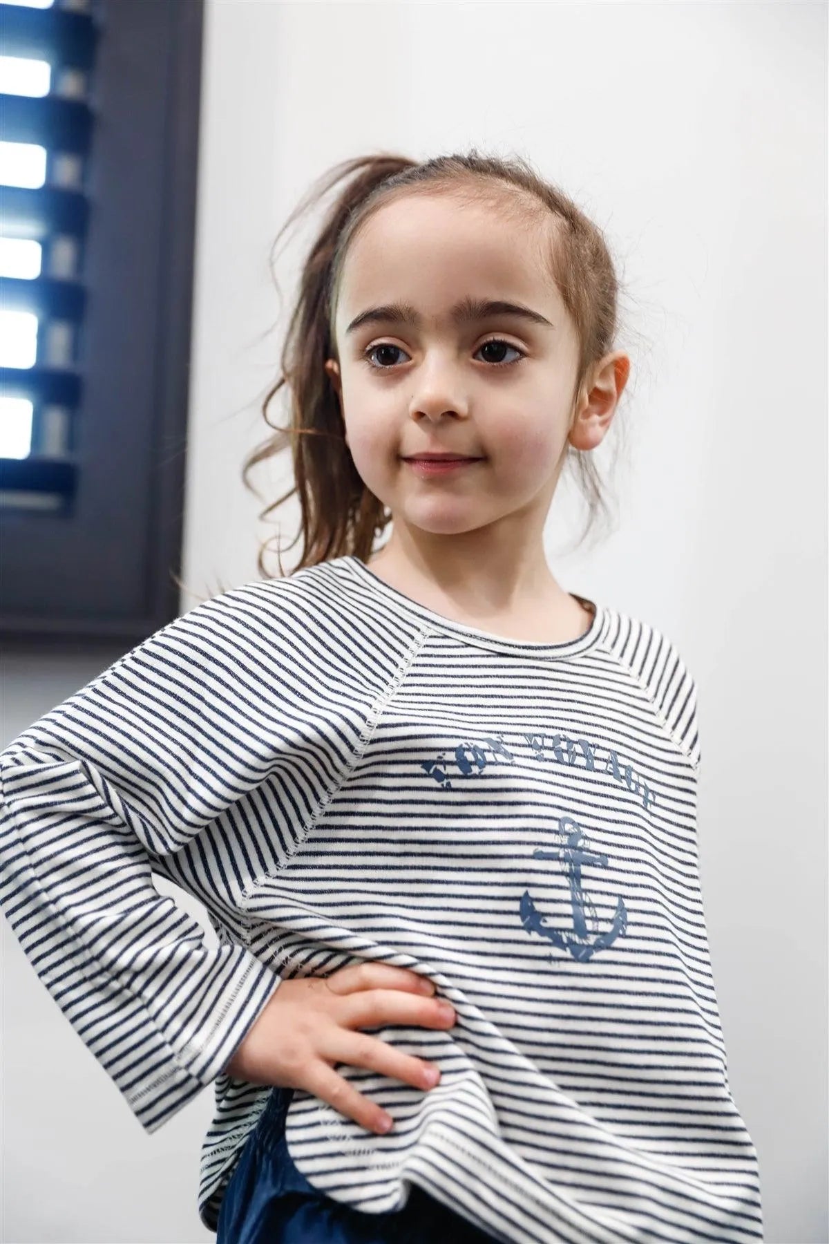 Toddler Girls Navy Striped Cotton Blend Marine Print Long Sleeve Top /2-2-2-2