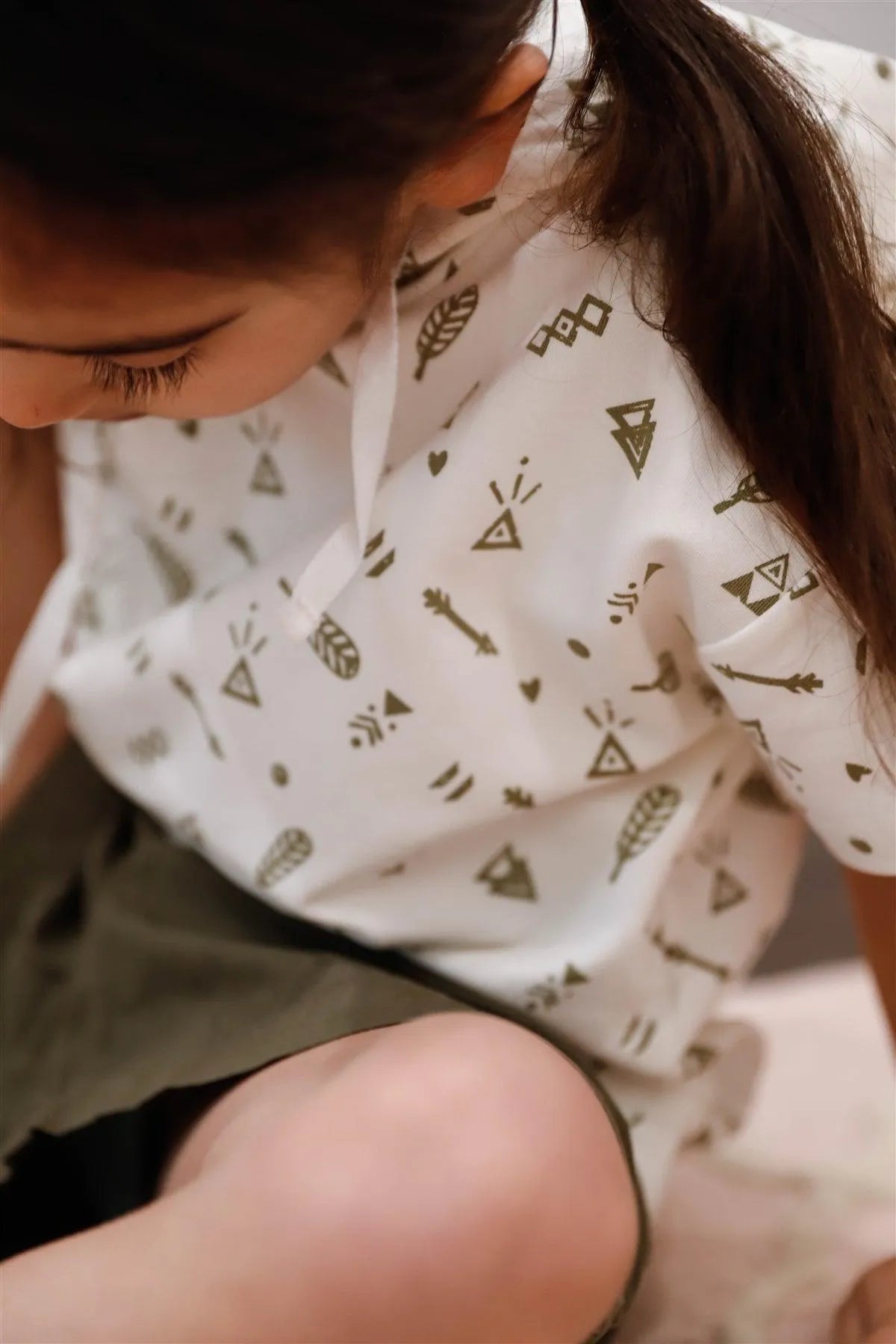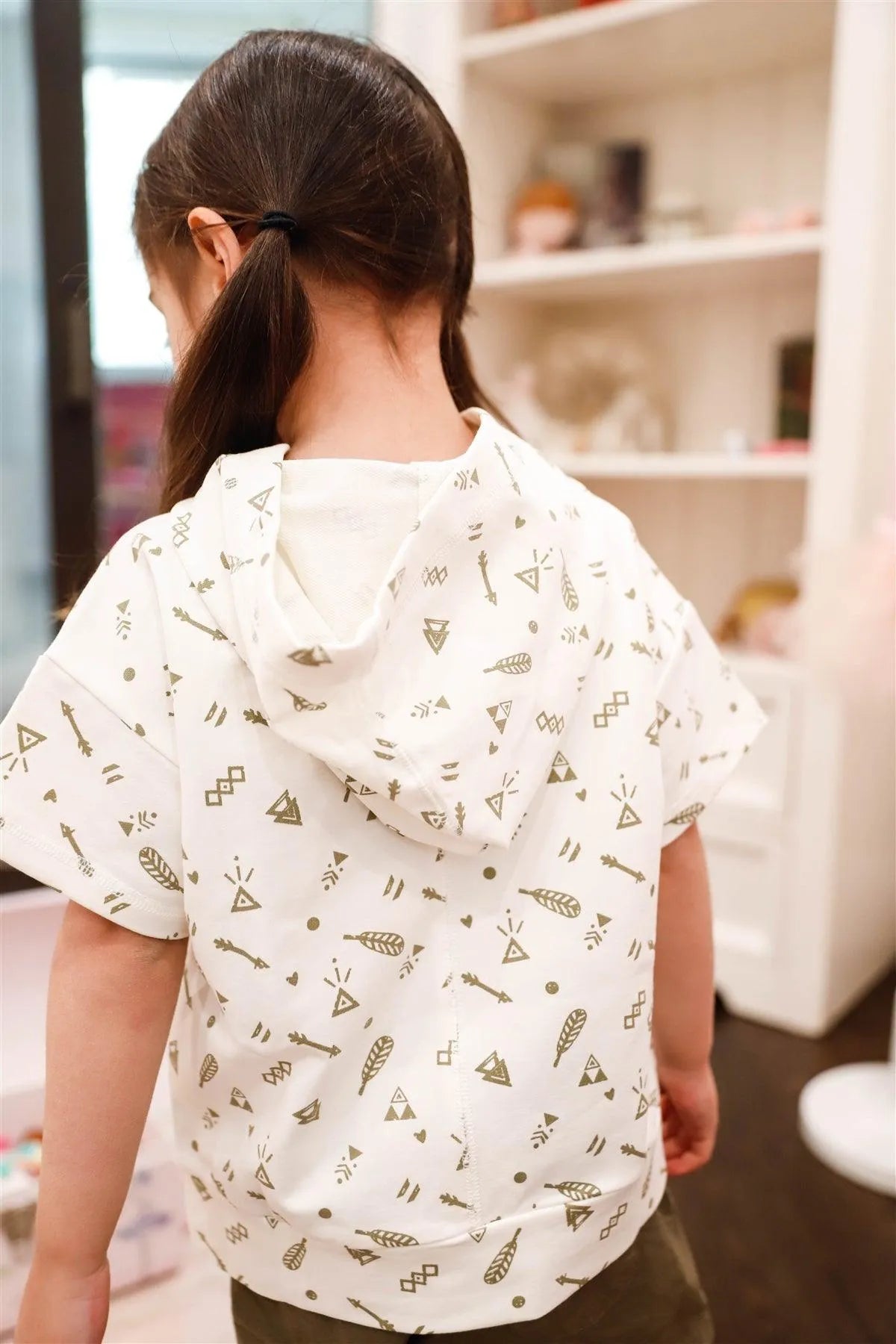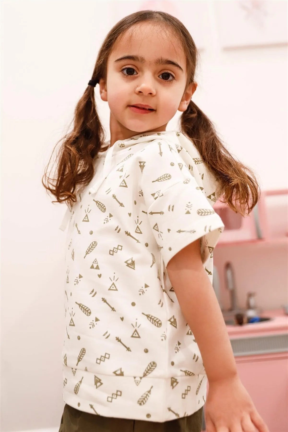 Toddler Girls Off-White Arrow & Feather Print Short Sleeve Hooded Top /1-2-2-1