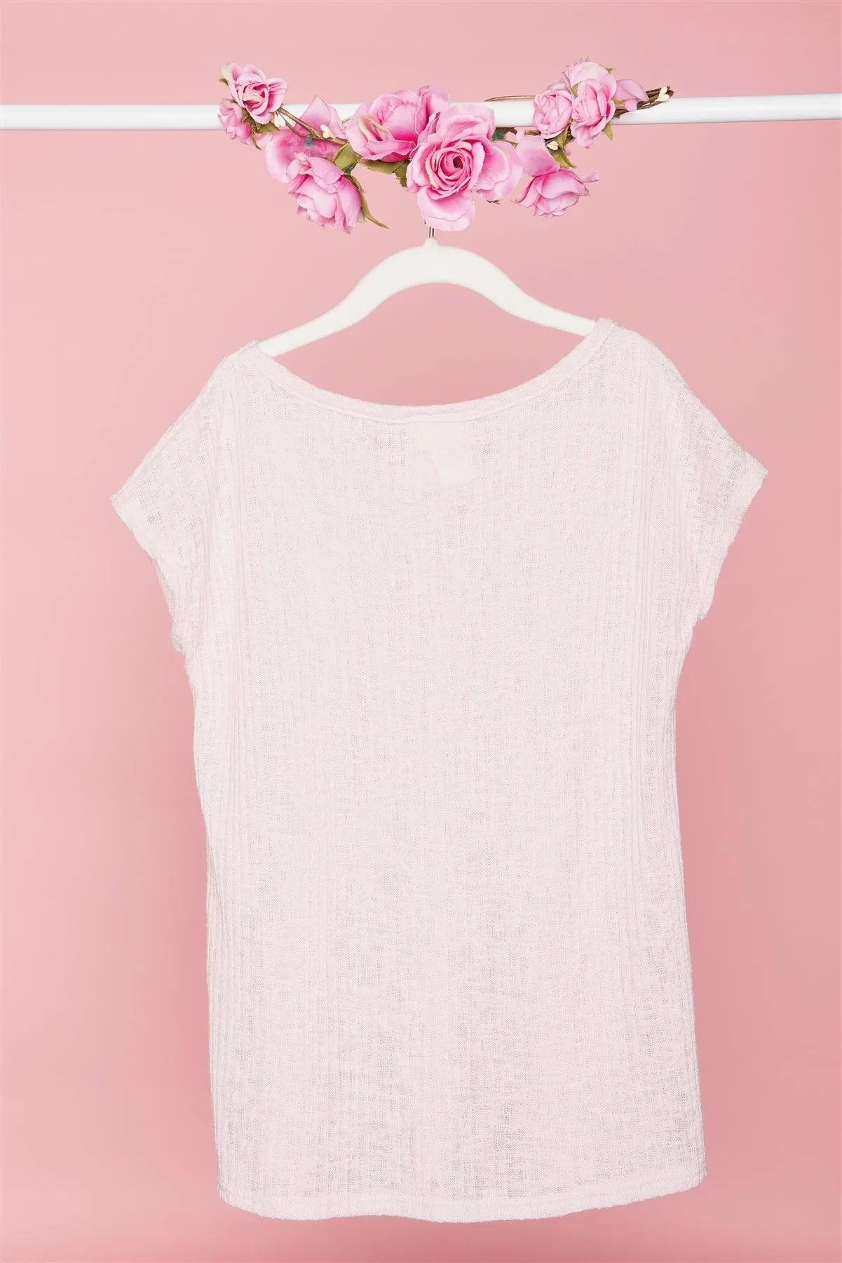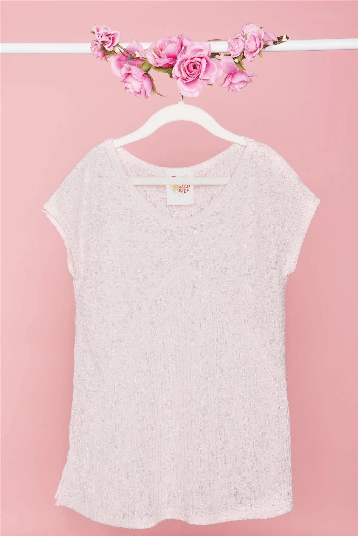 Girls top features: cap sleeves, slightly sheer, ribbed, round neckline, side slits, unlinedModel is 6 years old wearing size SmallSmall Size Item Measurements: Length: 21", Bust 30"
