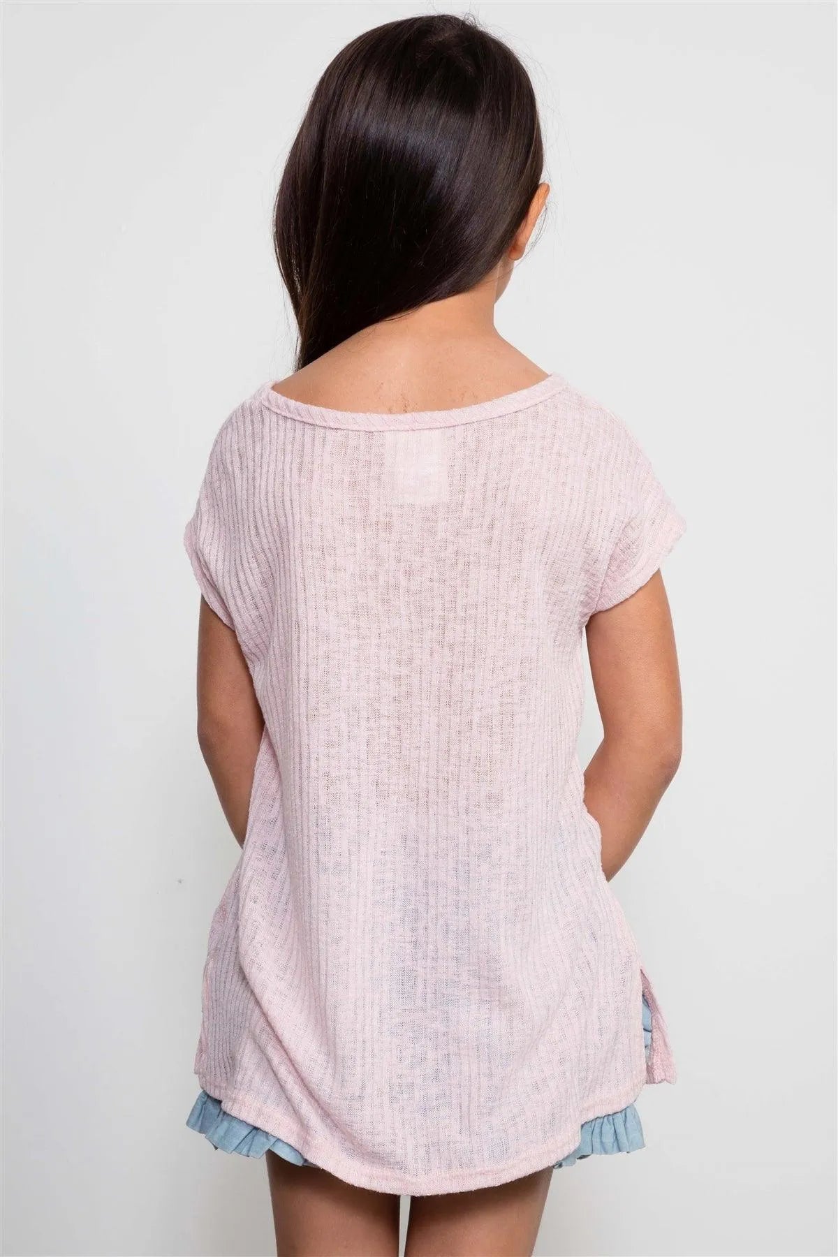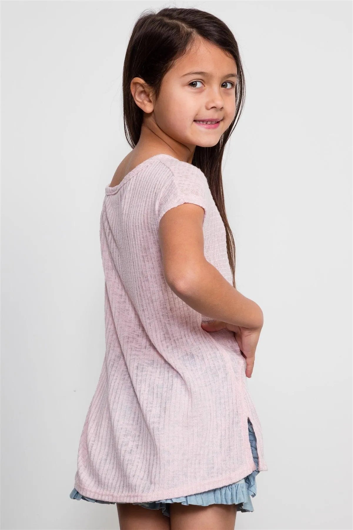 Girls Pink Ribbed Sleeveless Hi-Low Top / 1-2-2-1