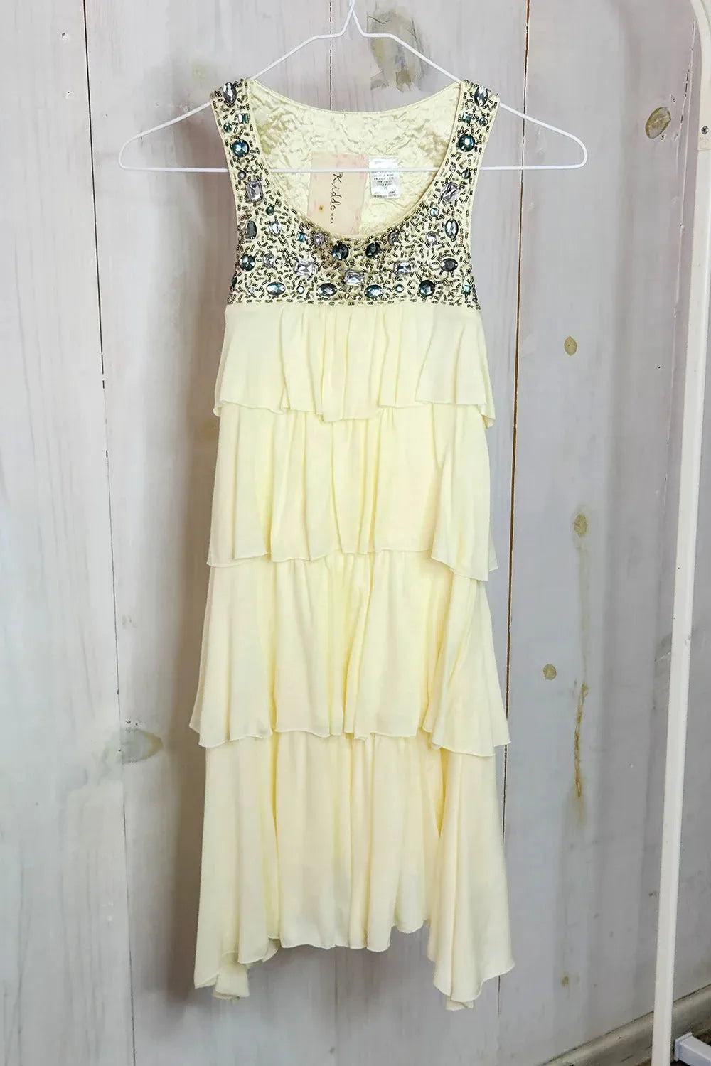 Girls Stone Bead Sleeveless Ruffle Dress