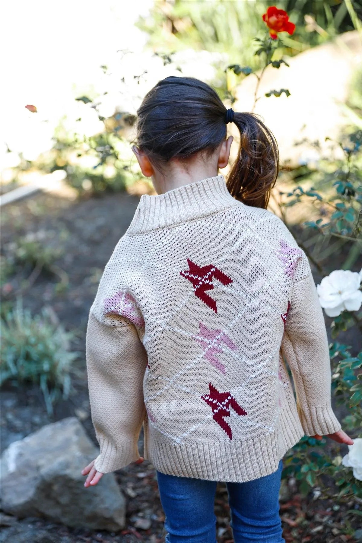 Toddler Girls Taupe Contrast Diamond Knit Turtle Neck Sweater /1-3-2