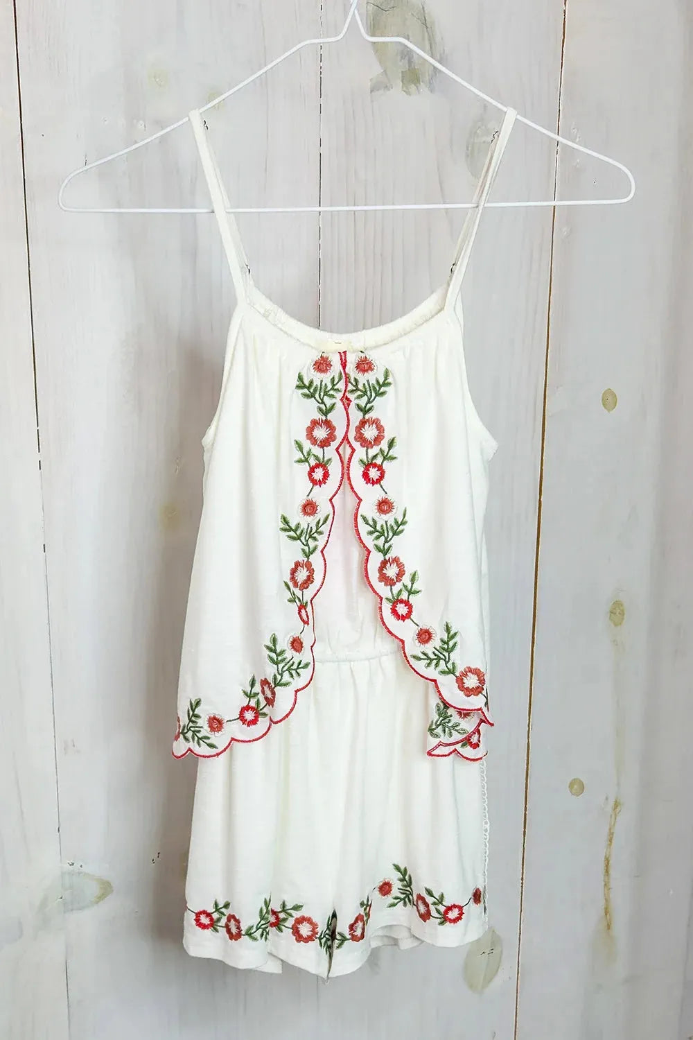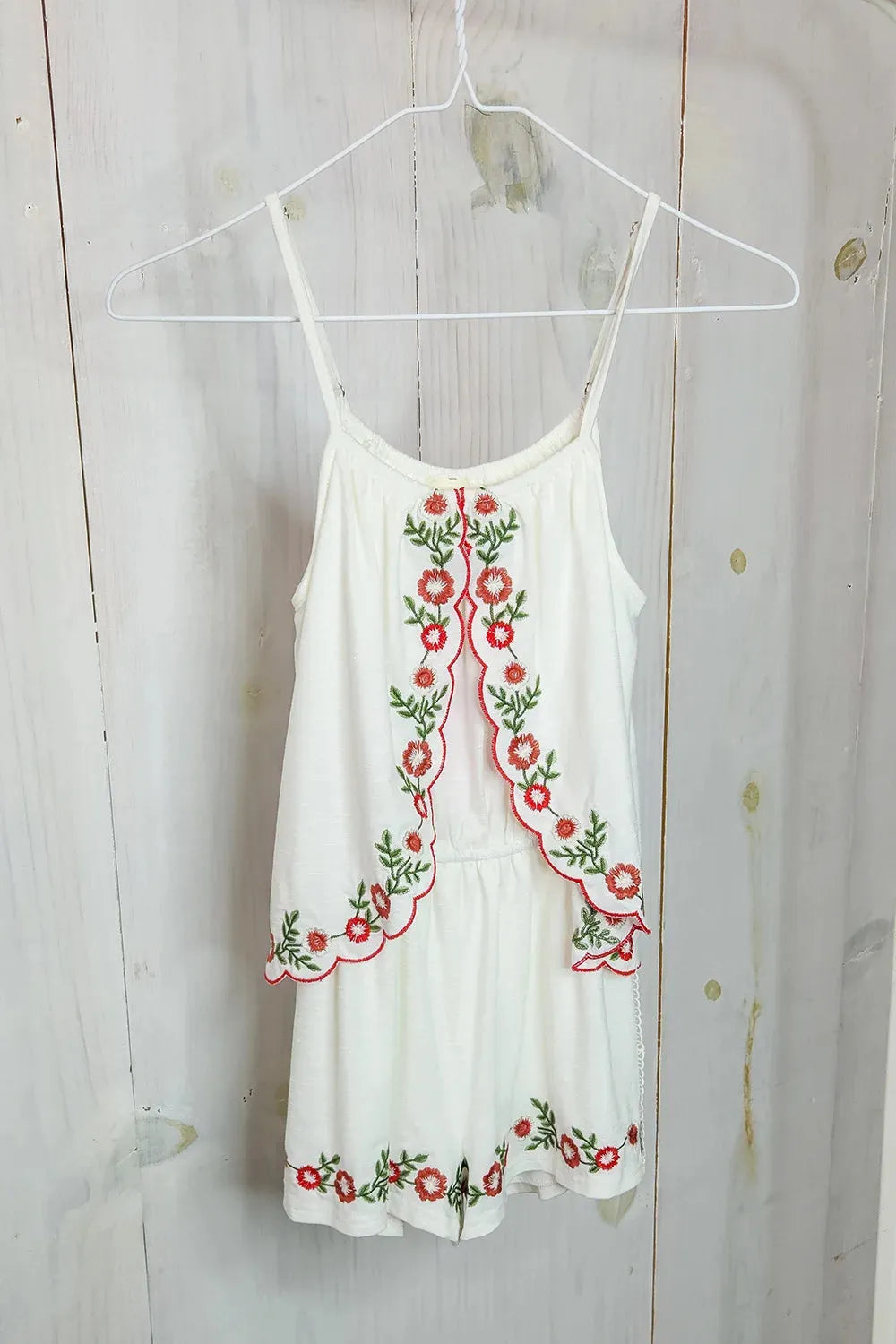 Girls Floral Embroidered Sleeveless RomperVendor:Chrysanthemum