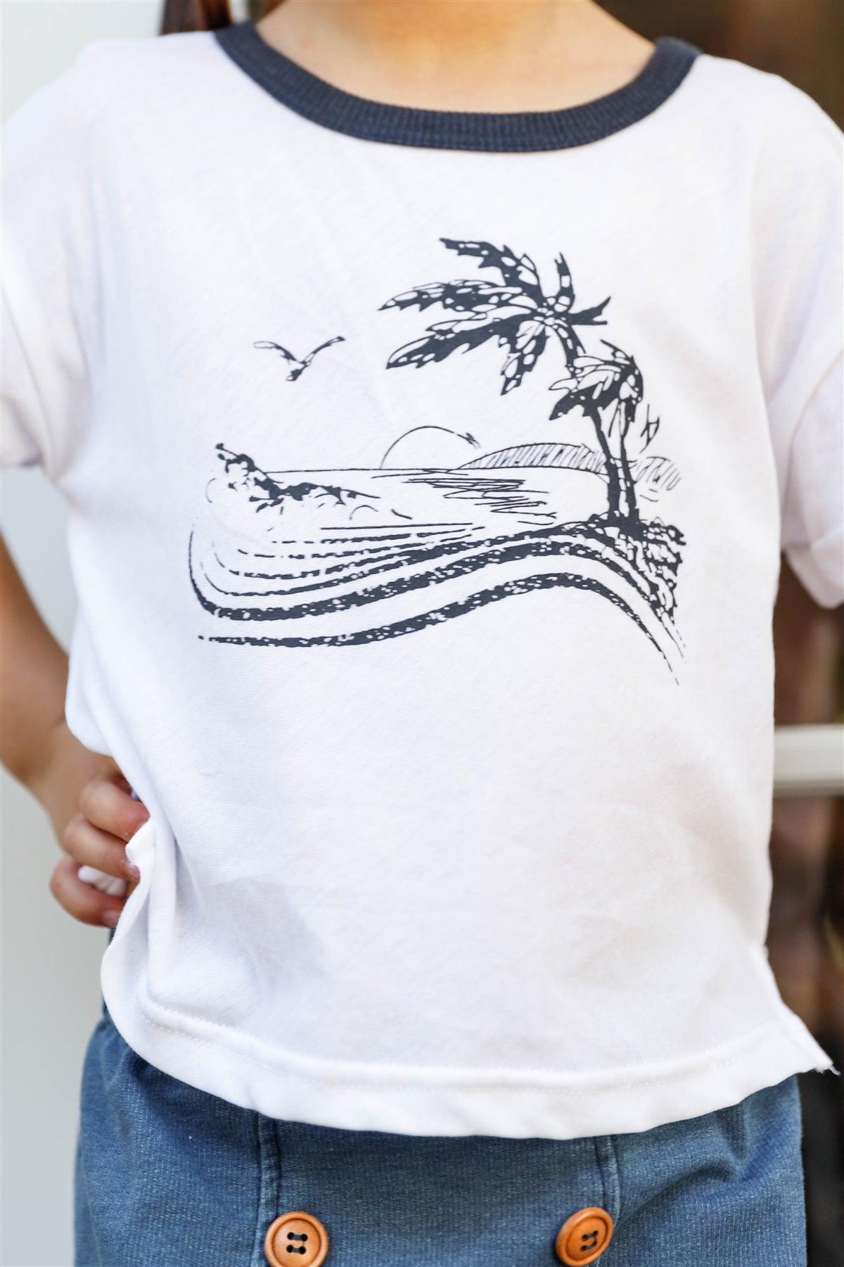 Toddler Girls White "Ocean View" Print Short Sleeve Top /1-4-1