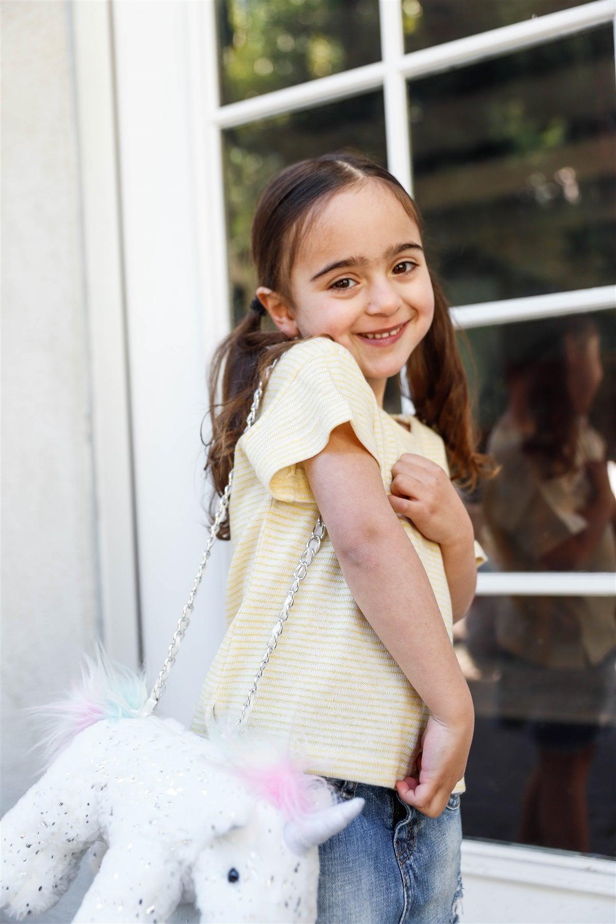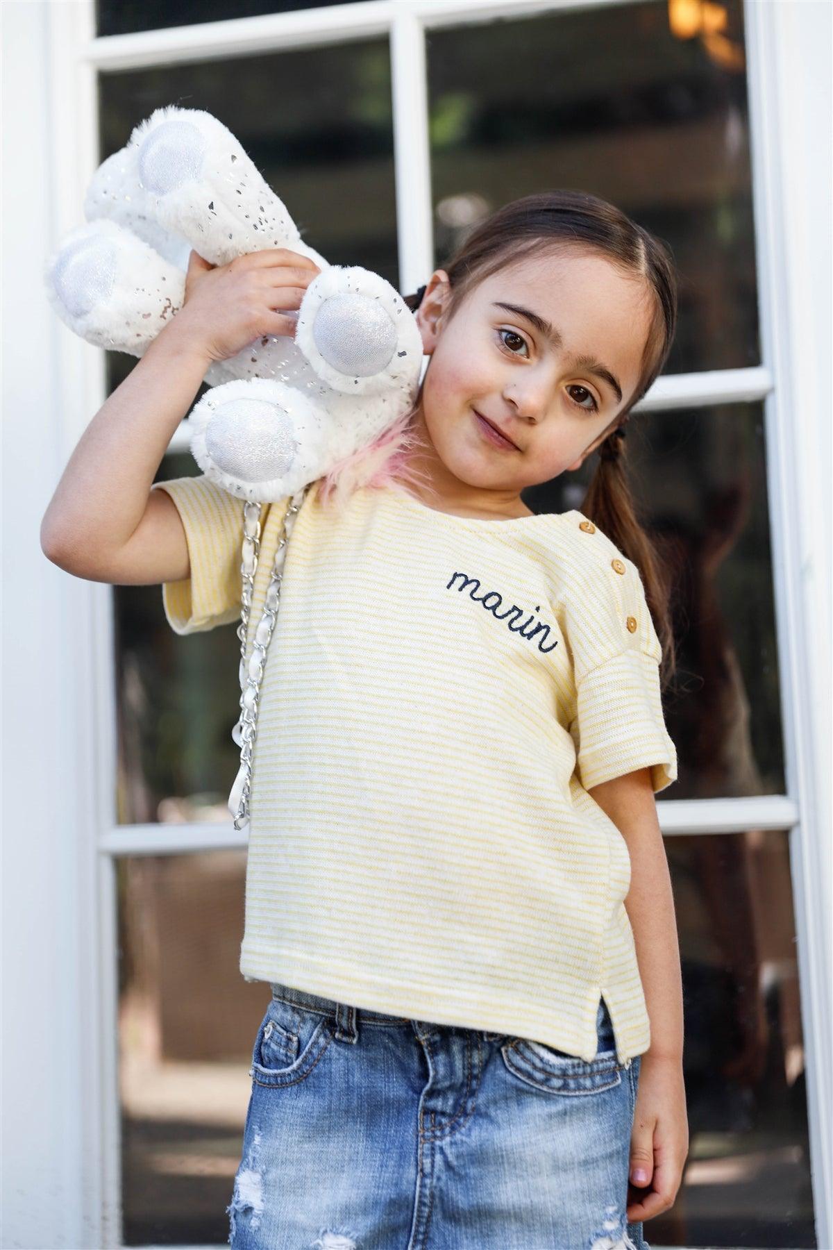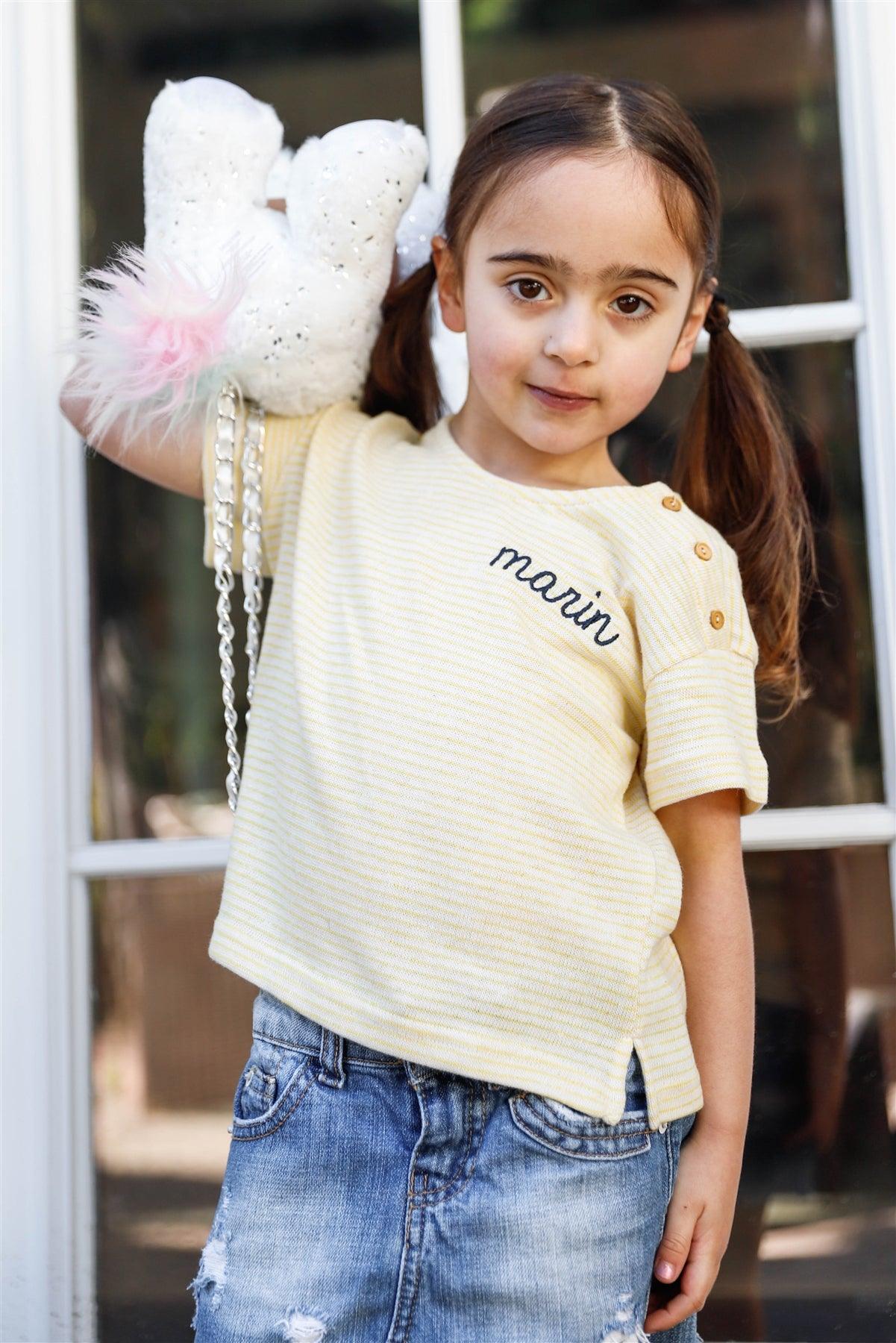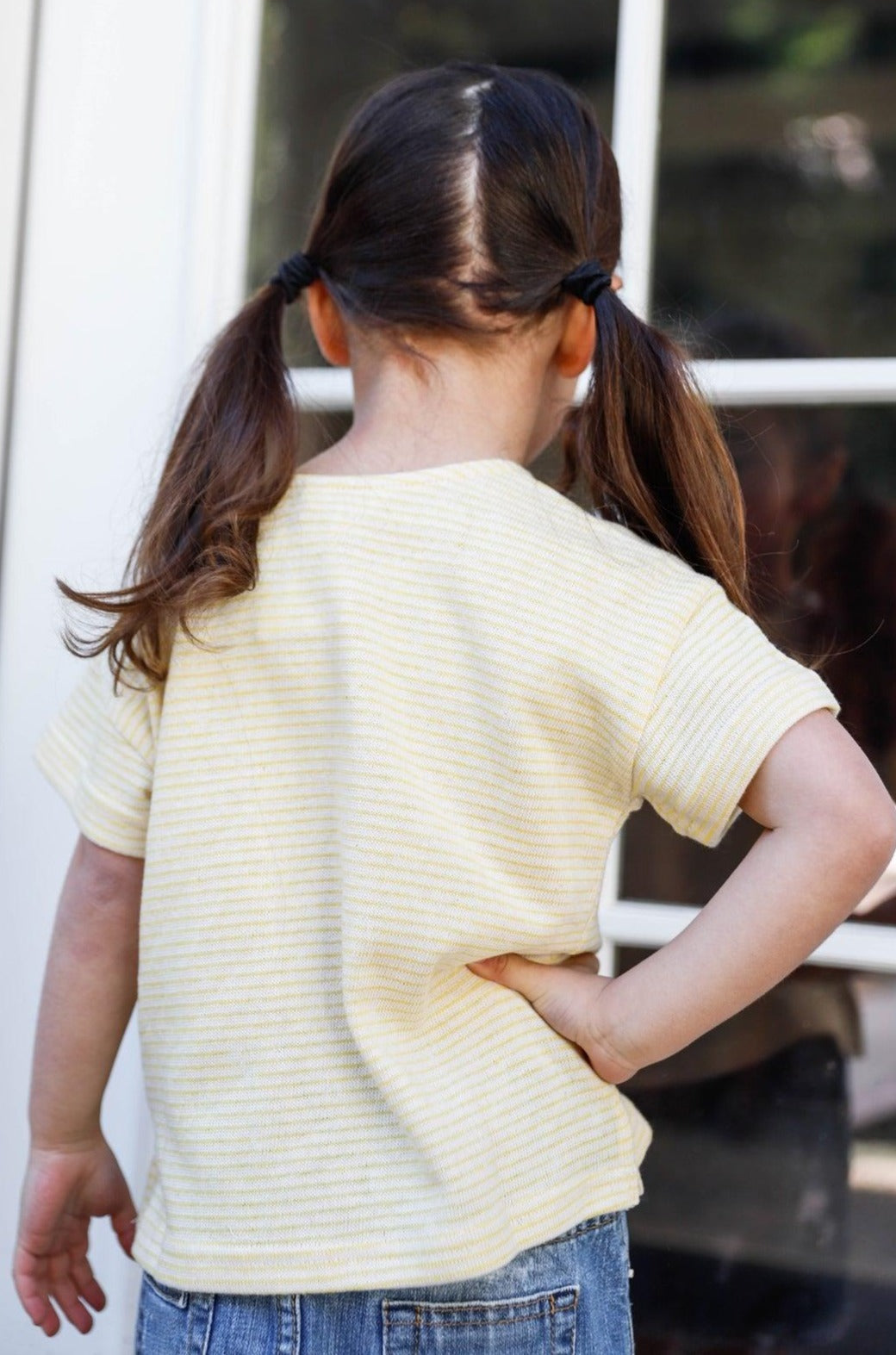 Toddler Little Girls Yellow Stripe "Marin" Side Button Details Top