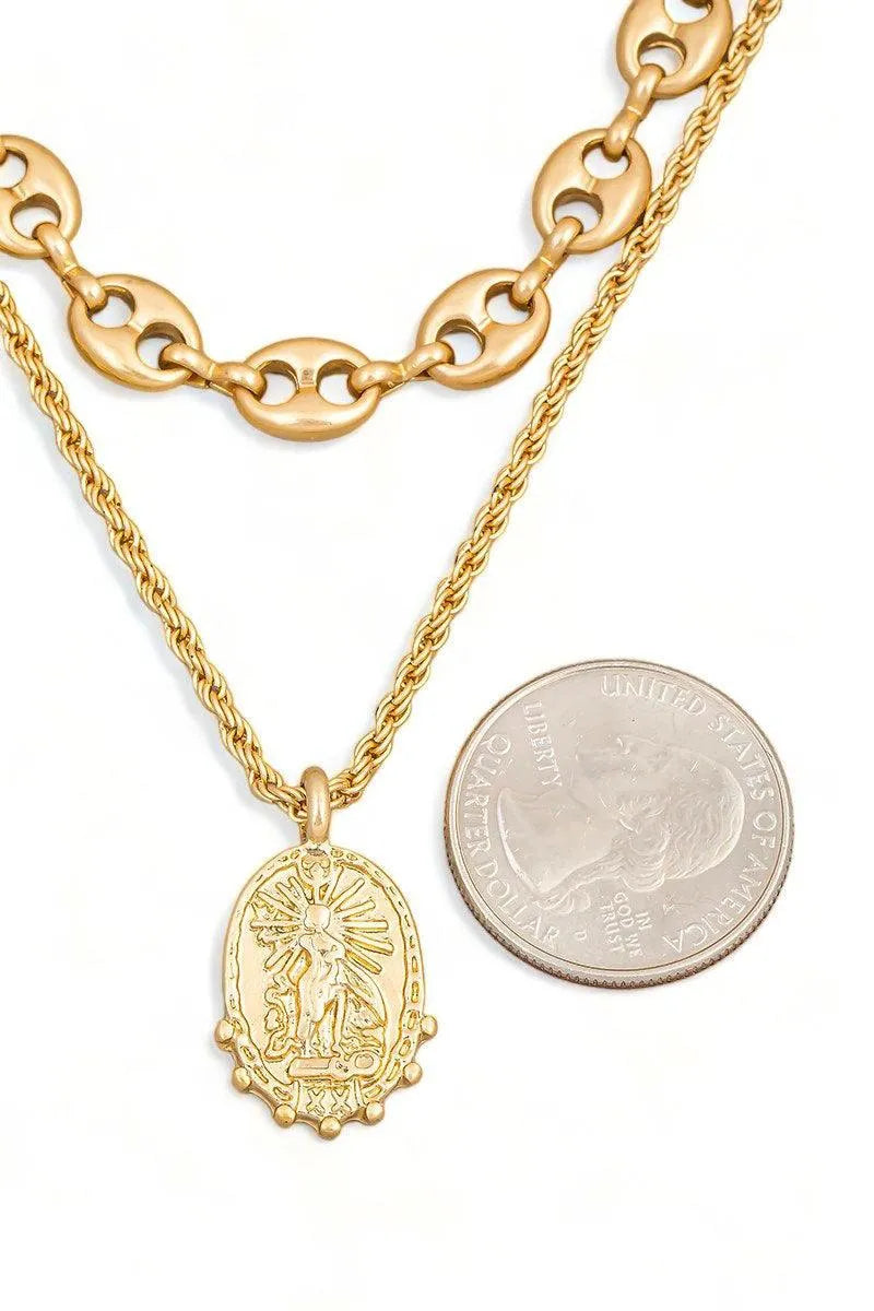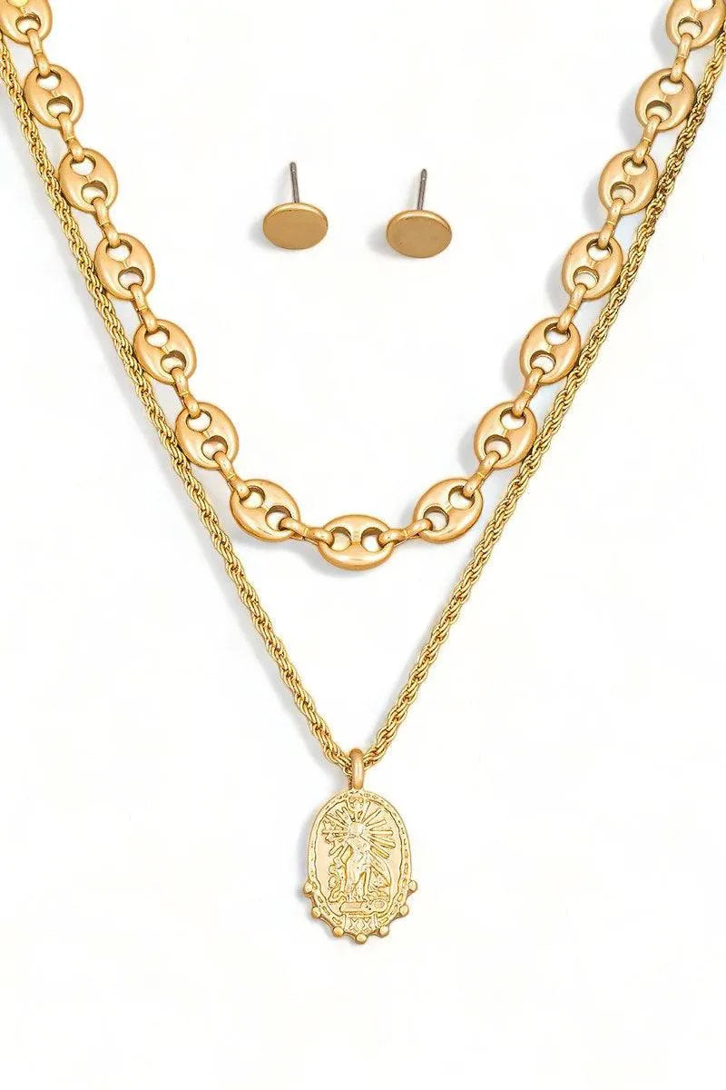 🖤 Add a touch of whimsy to your wardrobe with our Two Layer Mariner Chain Coin Pendant Necklace & Small Circle Earring Set. This set features a unique double layer chain design and playful coin pendant, paired with charming small circle earrings. Perfect for adding a bit of fun to any outfit!