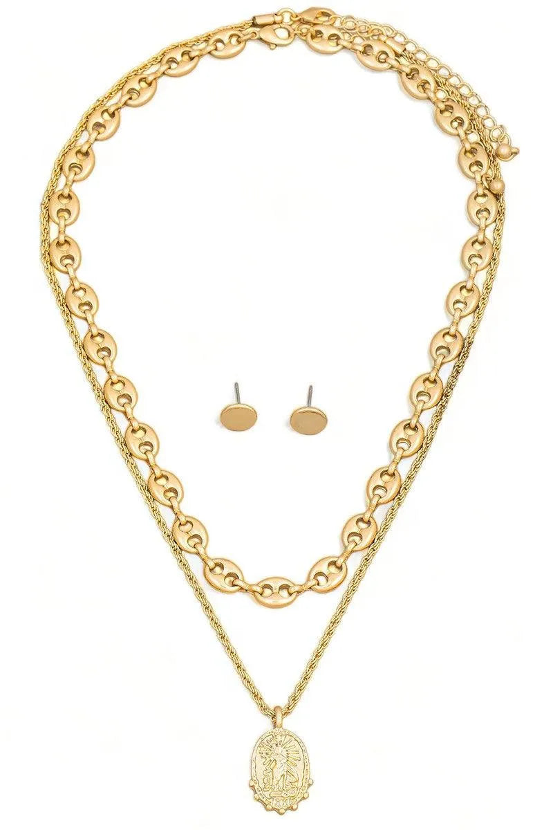 Layered Mariner Chain Pendant Necklace Stud Earring Set