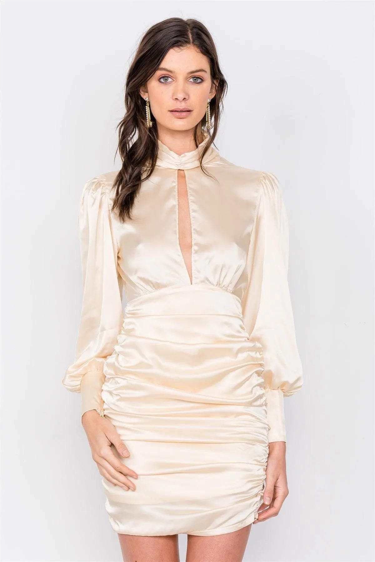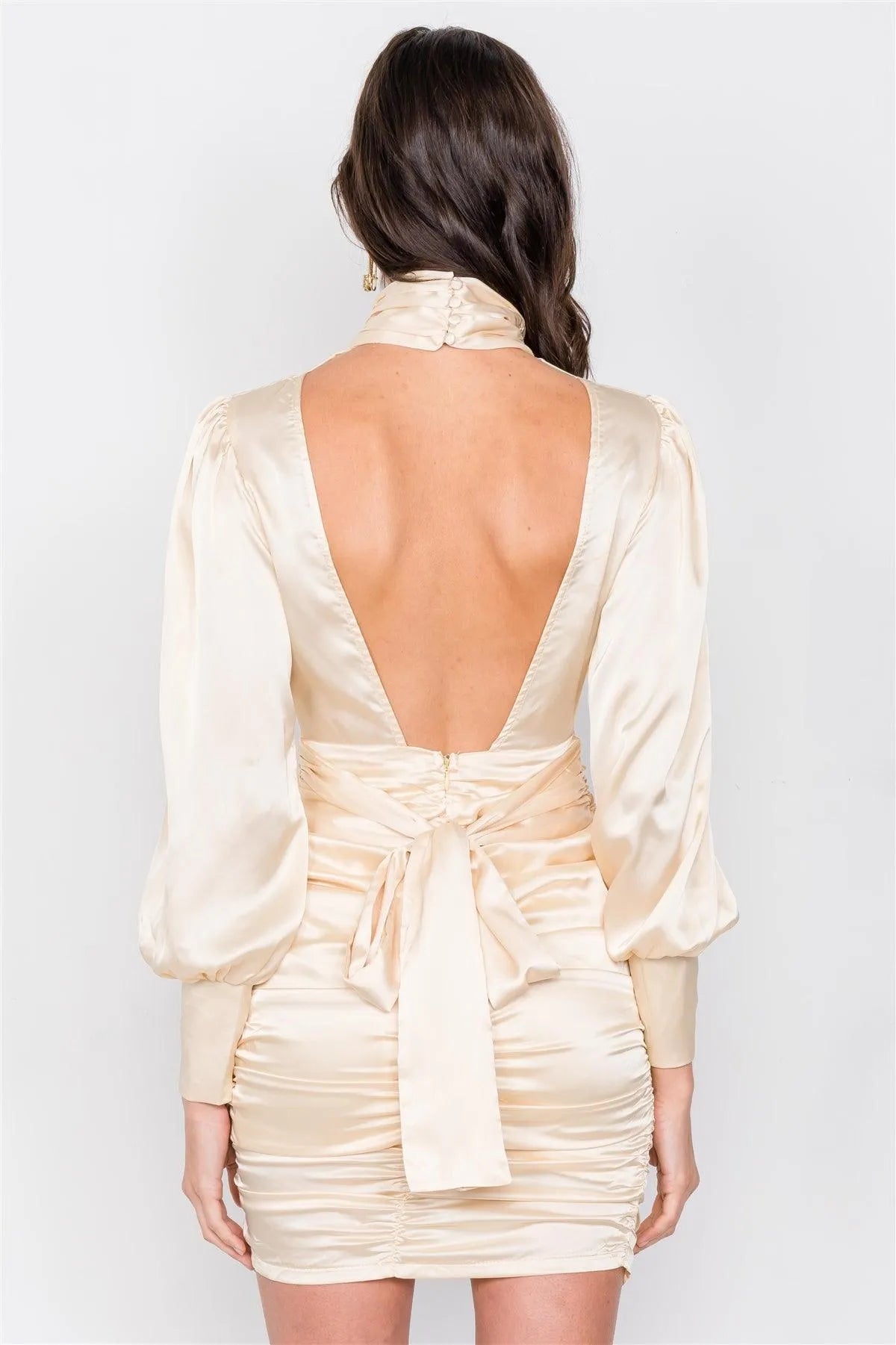 Gold Beauty Turtleneck Open Back Silk Mini Bodycon Dress /3-2-1