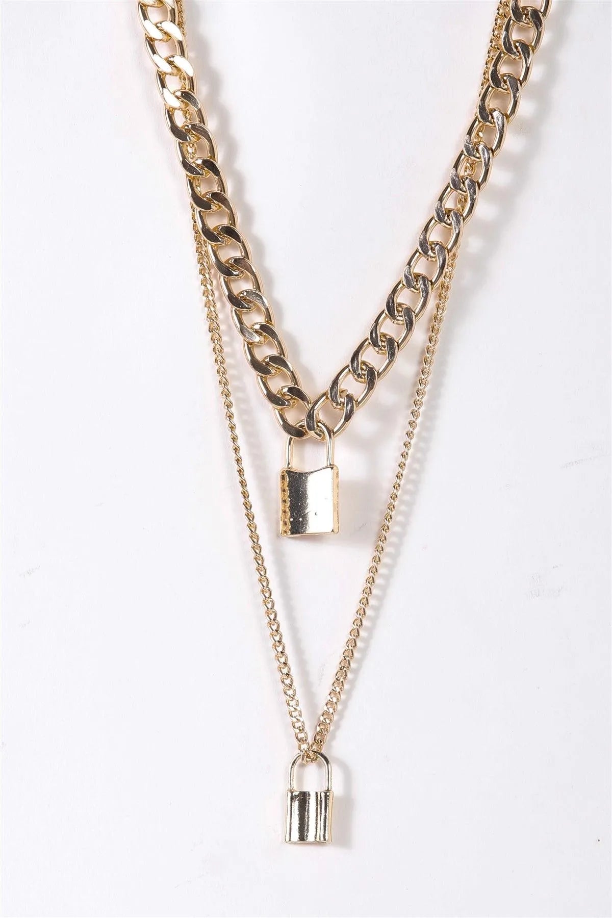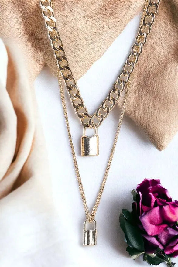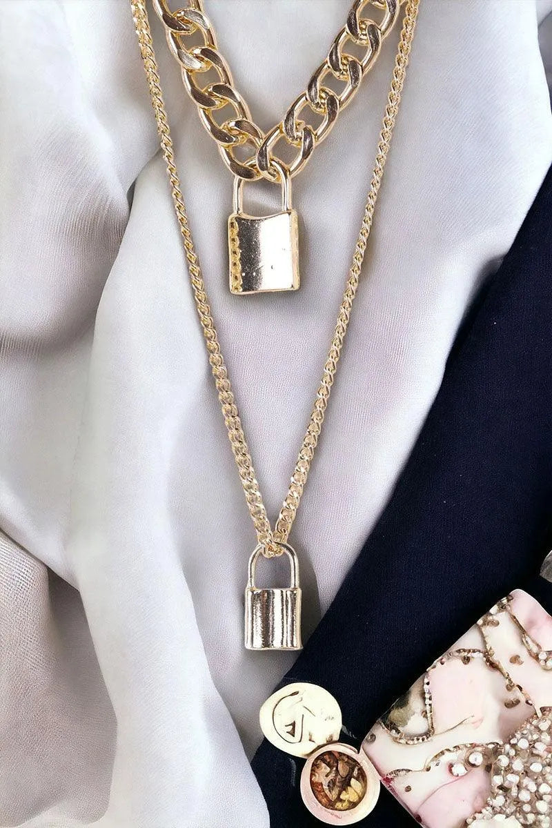 Gold Chunky & Link Chains Padlocks Set Necklace