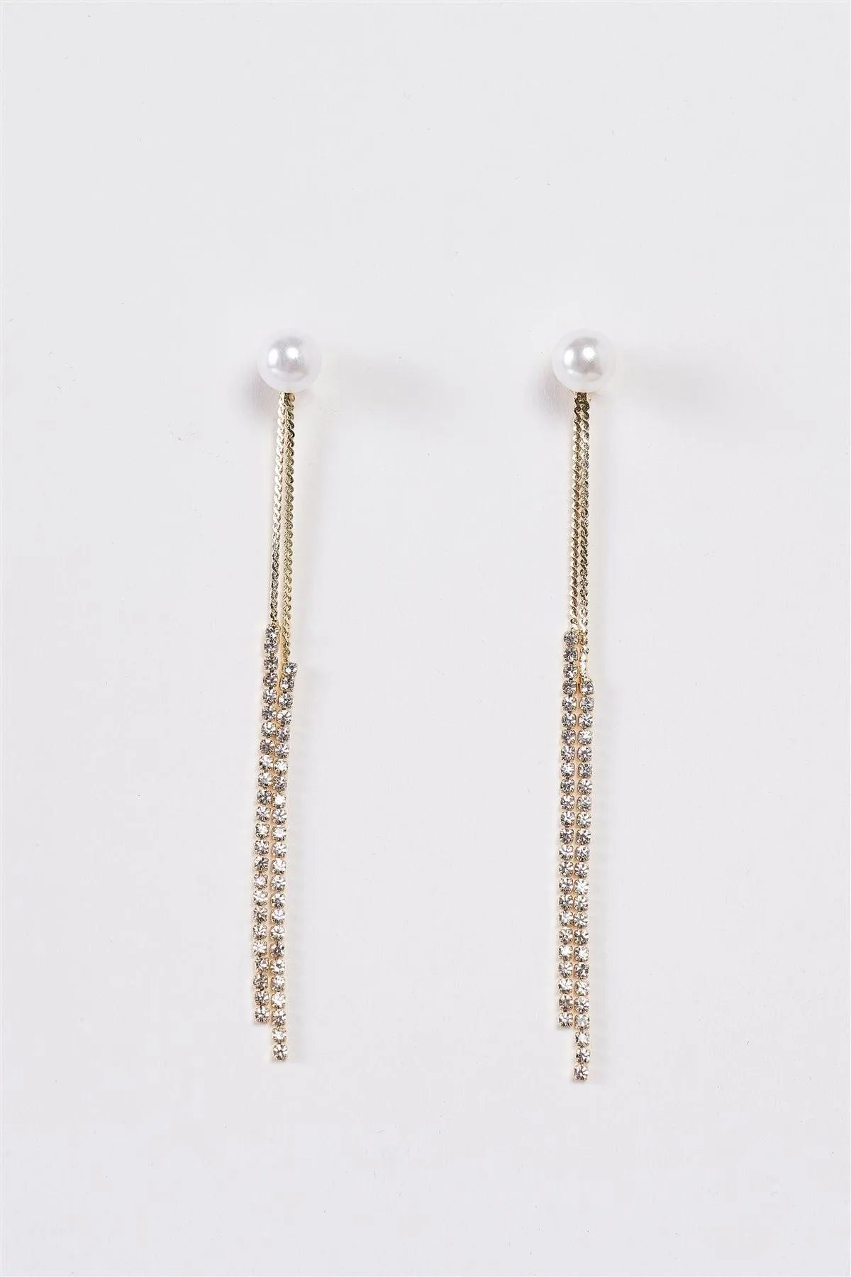 Gold Pearl Rhinestone Ear Jacket Tassel Drop Earrings