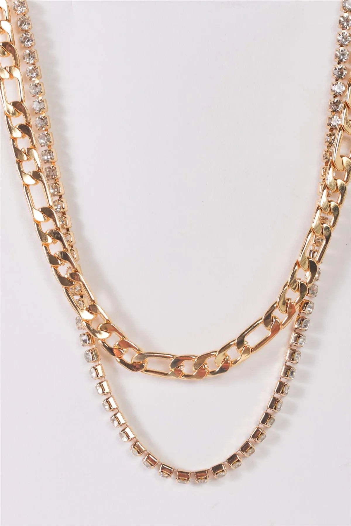 Gold Figaro Link Chain & Rhinestone Box Chain Set Necklace