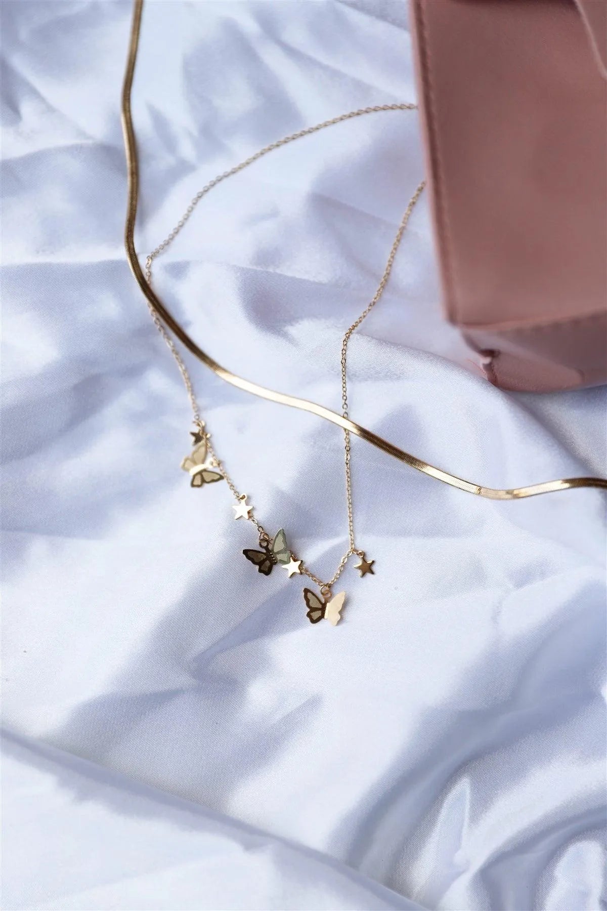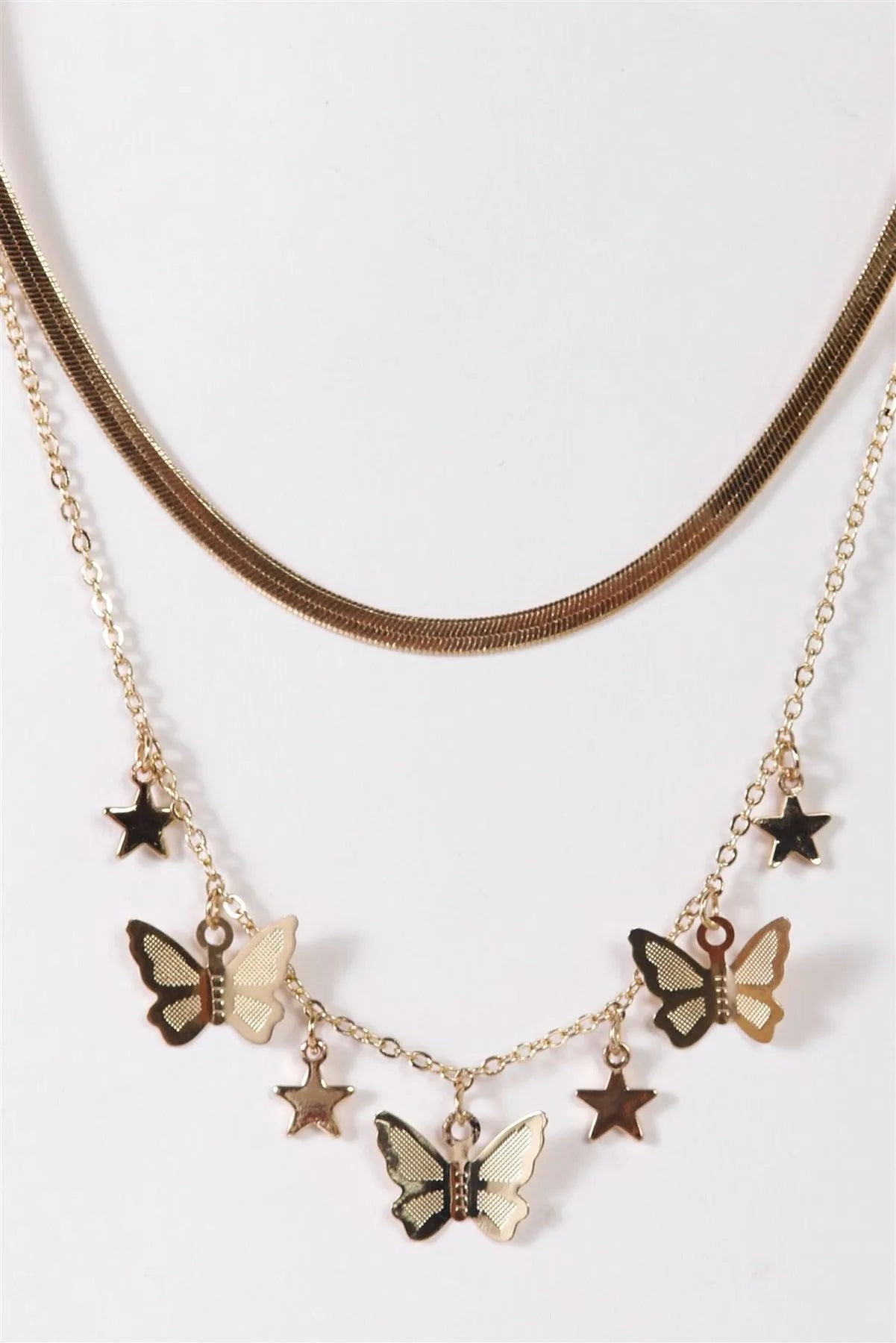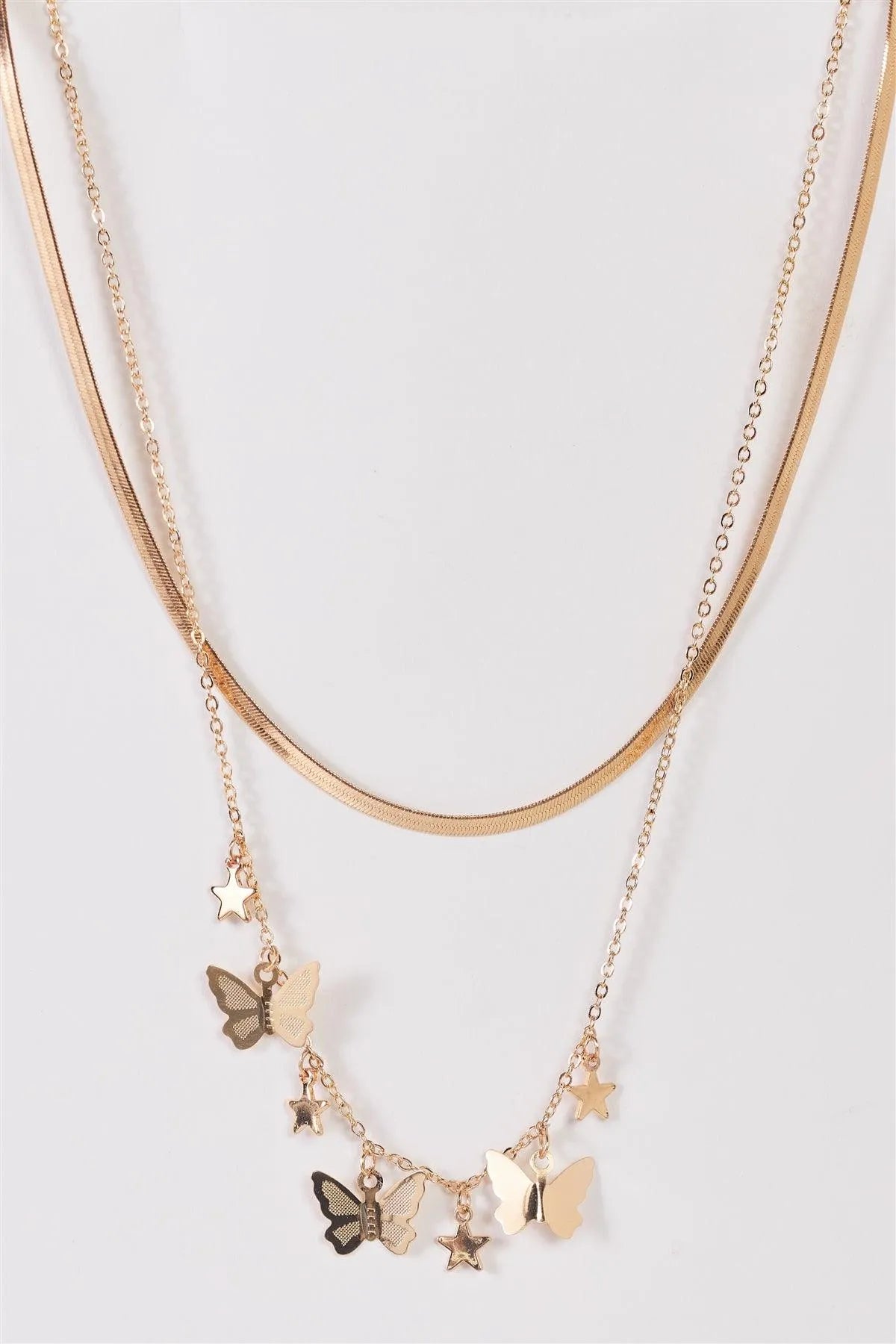 Flat Snake Chain 3D Butterflies Stars Set Necklace