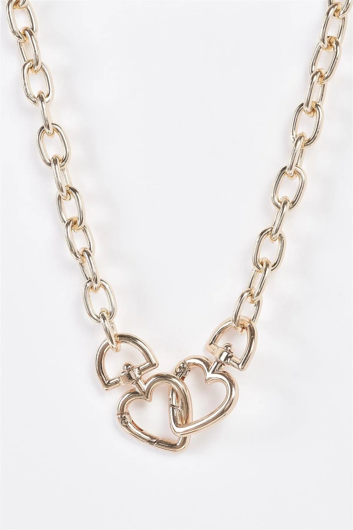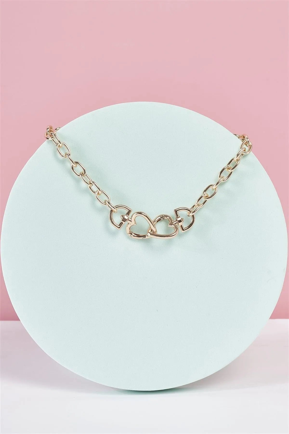 Hearts Gold Link Chain Interlocked Hearts Charm Necklace