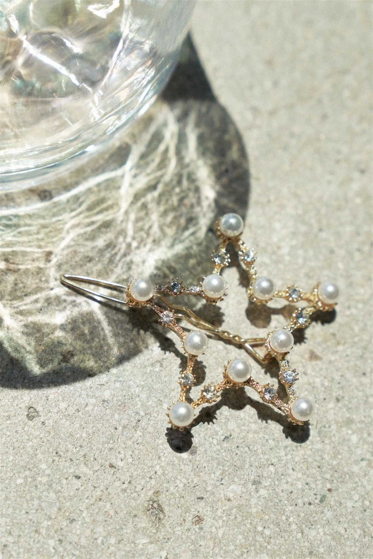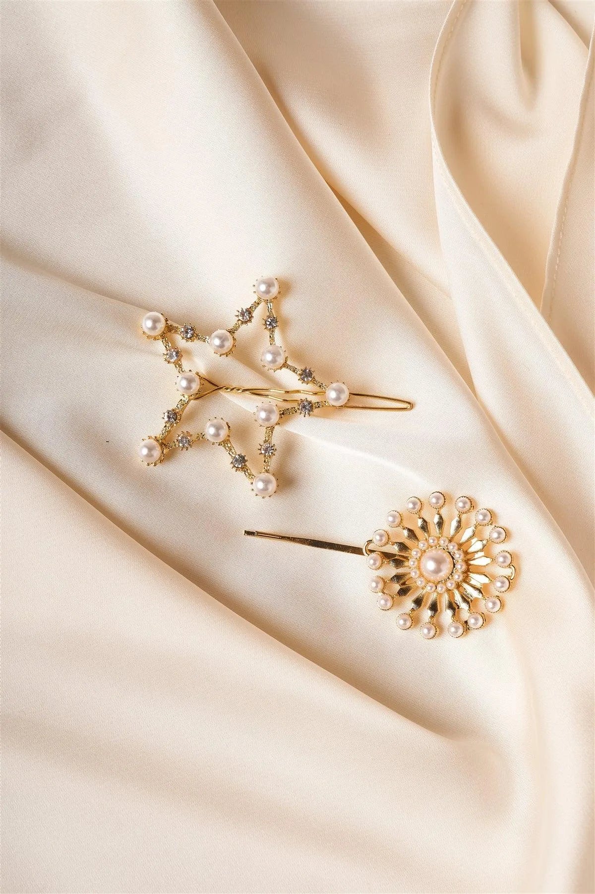 2pcs Gold Pearl Rhinestone Star Hair Bobby Pins