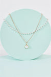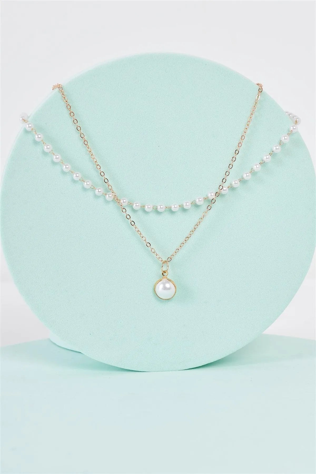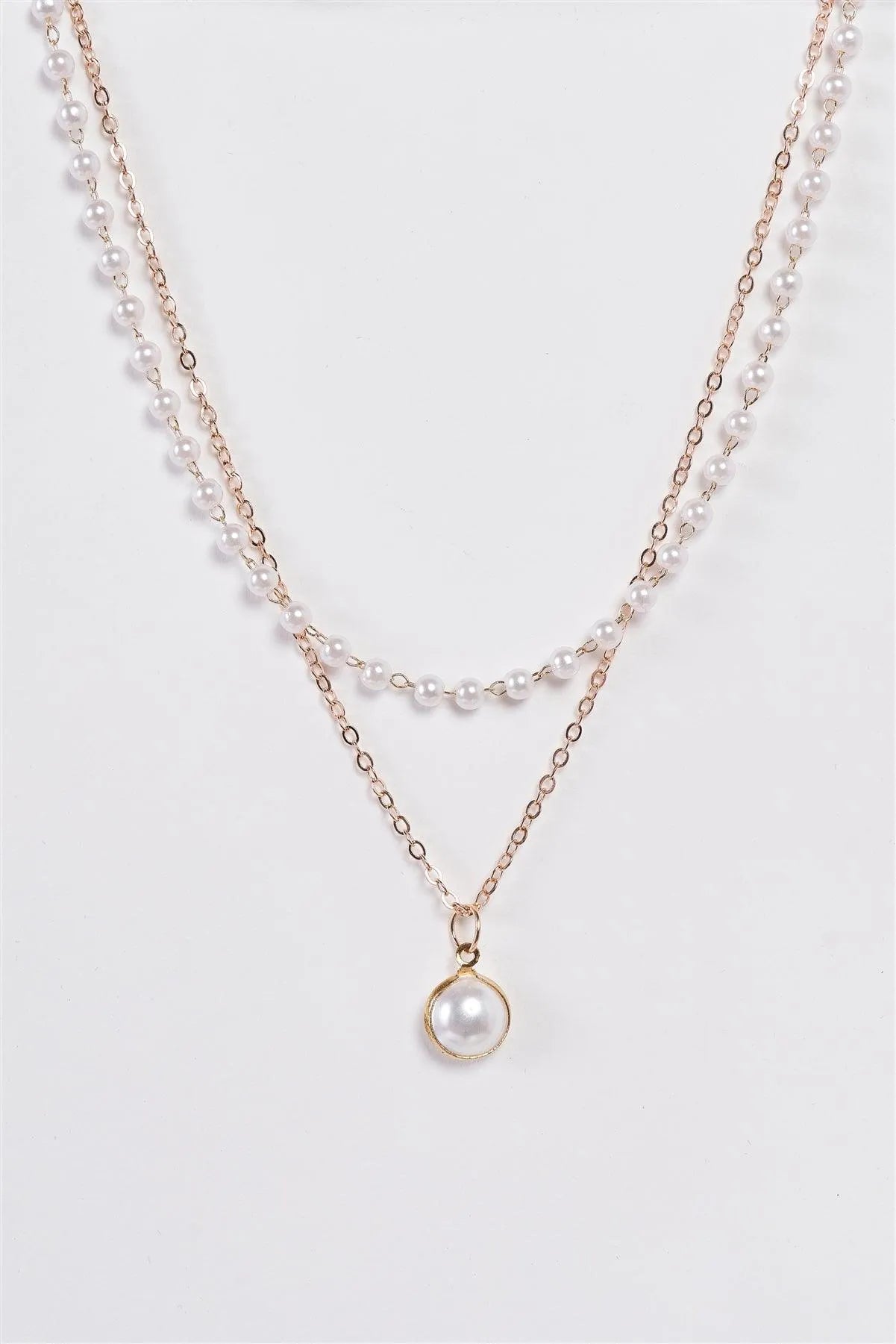 Gold Pearl Double Faux Pearl Pendant Necklace