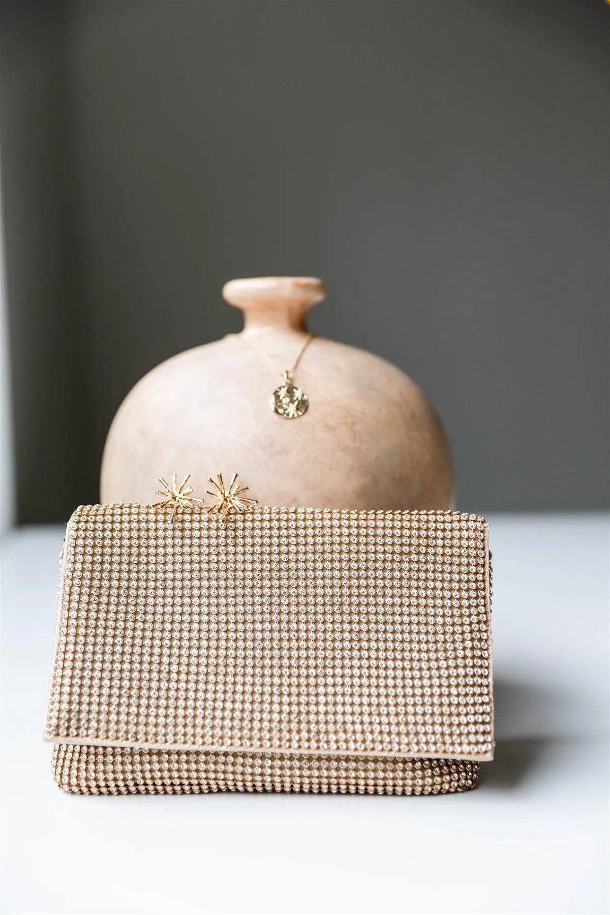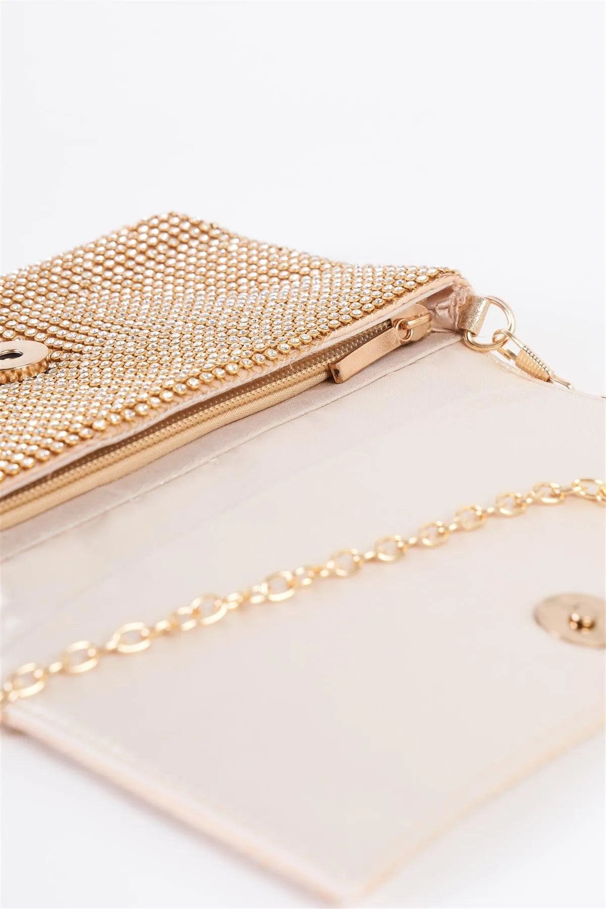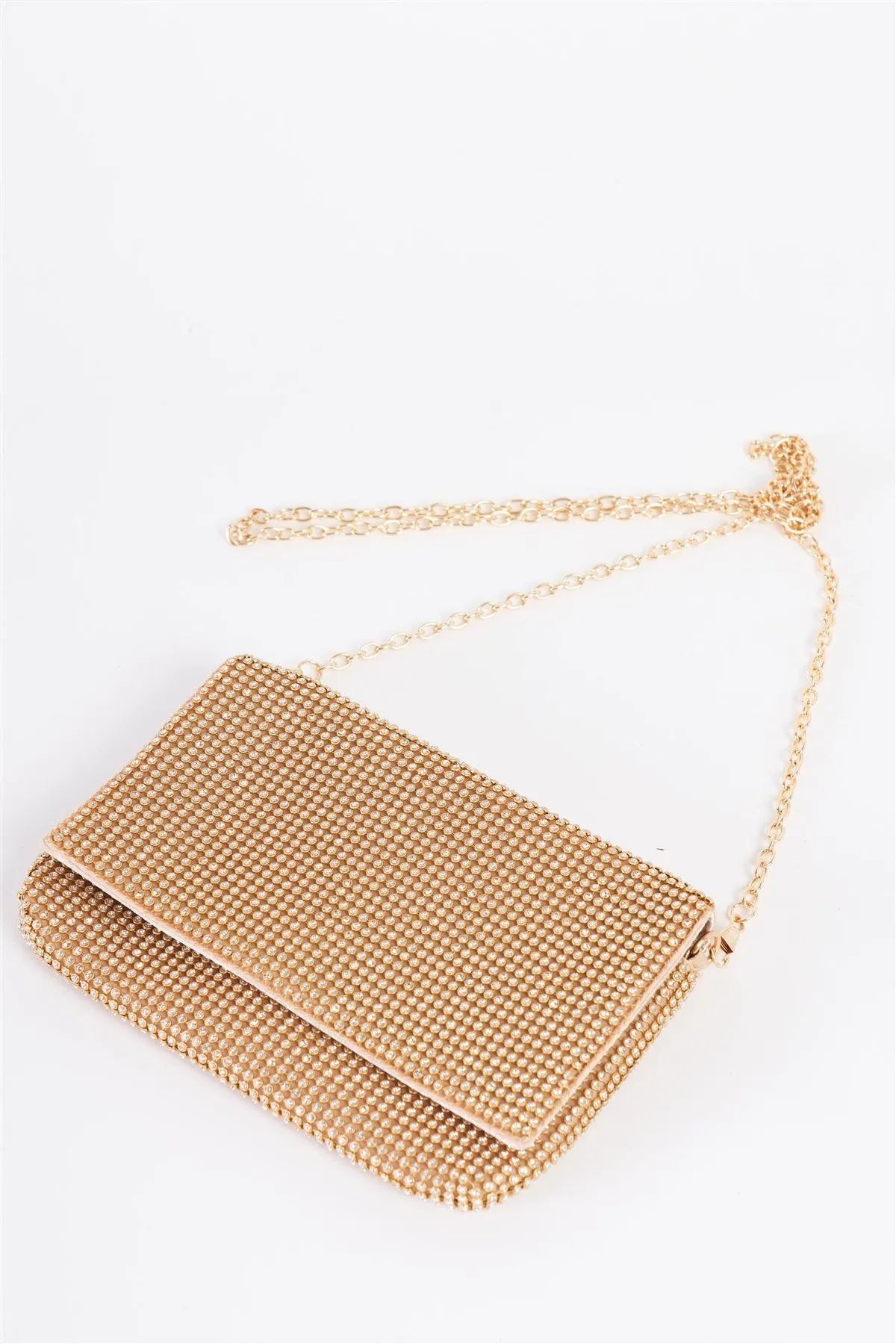 Gold Rectangle Rhinestone Chain Crossbody Strap Clutch Bag /1 Bag