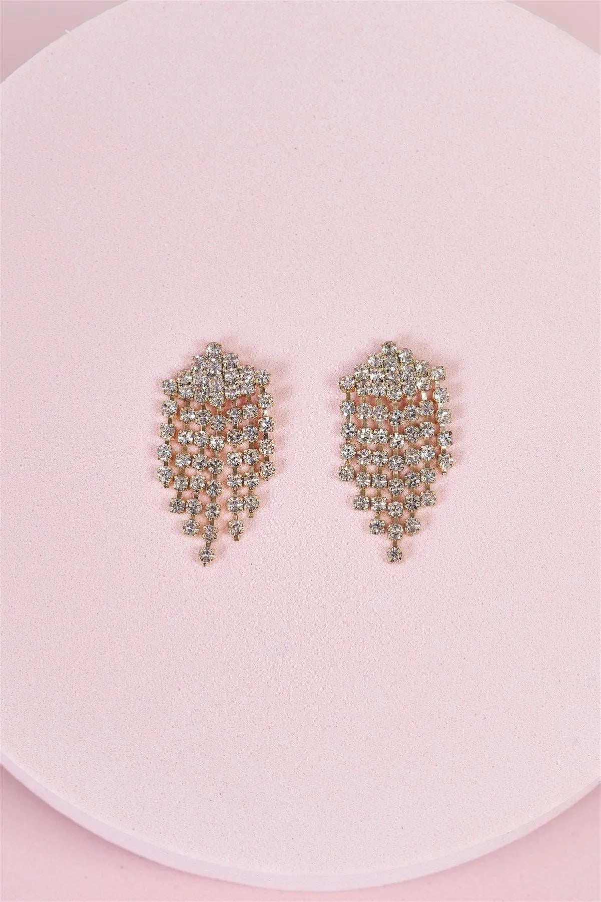🖤 Dangling rhinestone box chains hanging from a geo embellished post-back closure