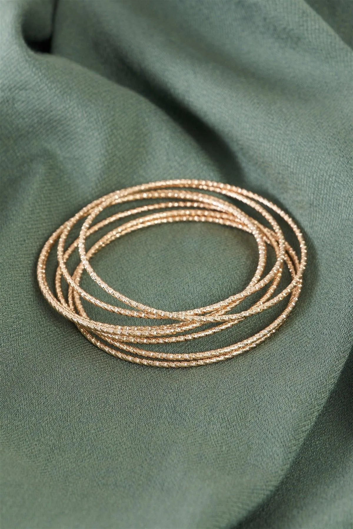 Gold Ribbed 7 Ring Bracelet /6 Pieces