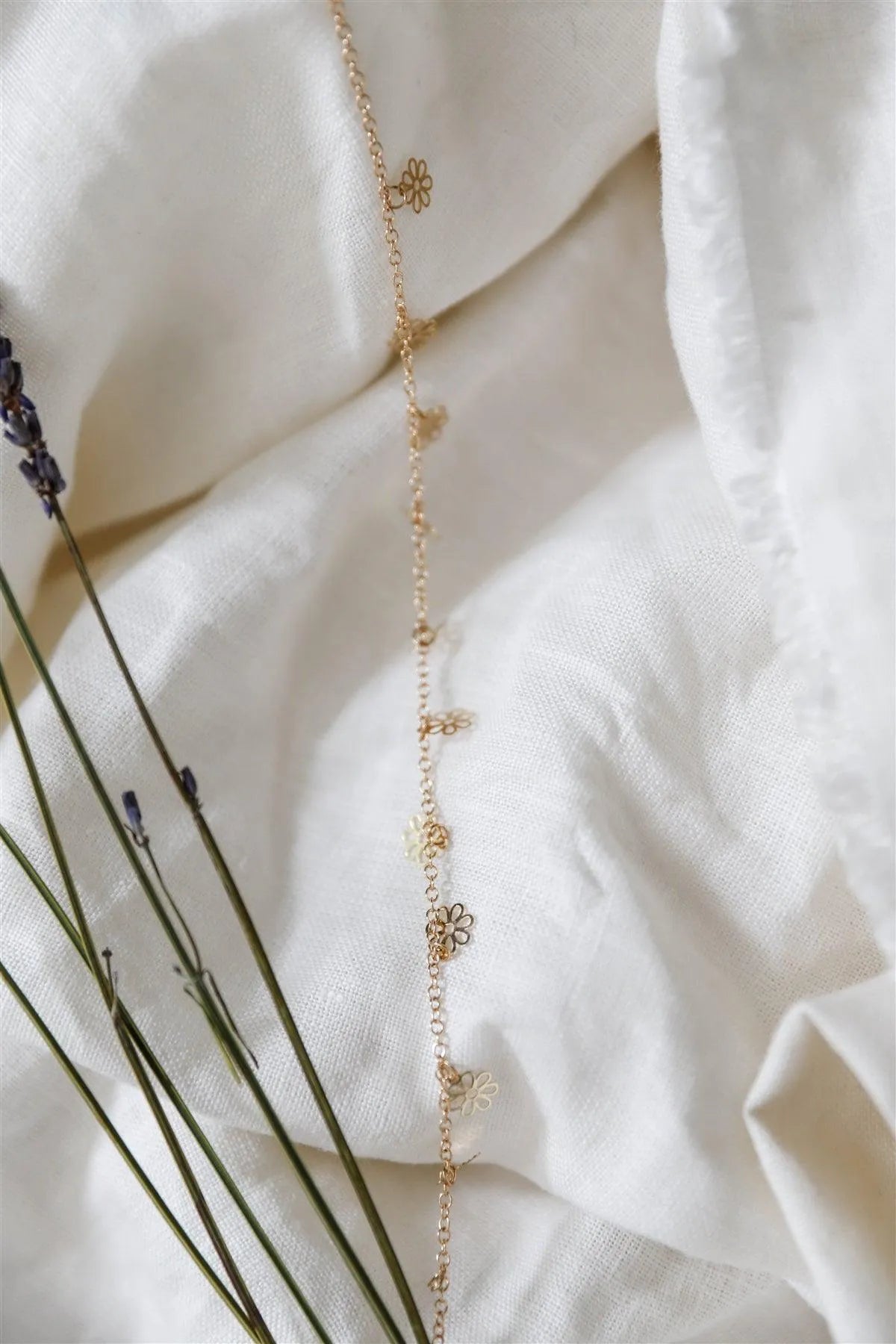 Gold Short Chain Laser Cut Daisy Charms Necklace