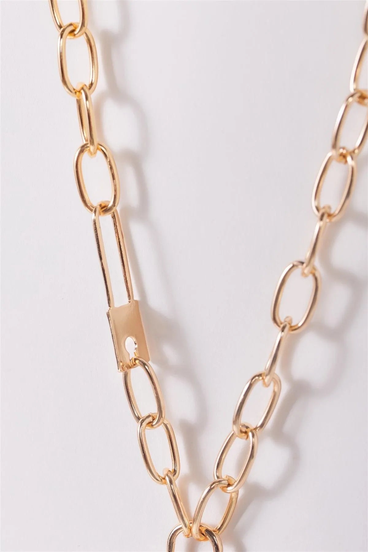 Add some edge to your style with this Gold Thick Paper Clip Chain Necklace! Featuring a unique padlock pendant and a pin, this necklace is perfect for those with a cool and trendy sense of fashion. The lobster claw closure and length extender ensure a perfect fit. Get ready to make a bold statement with this one-of-a-kind necklace.