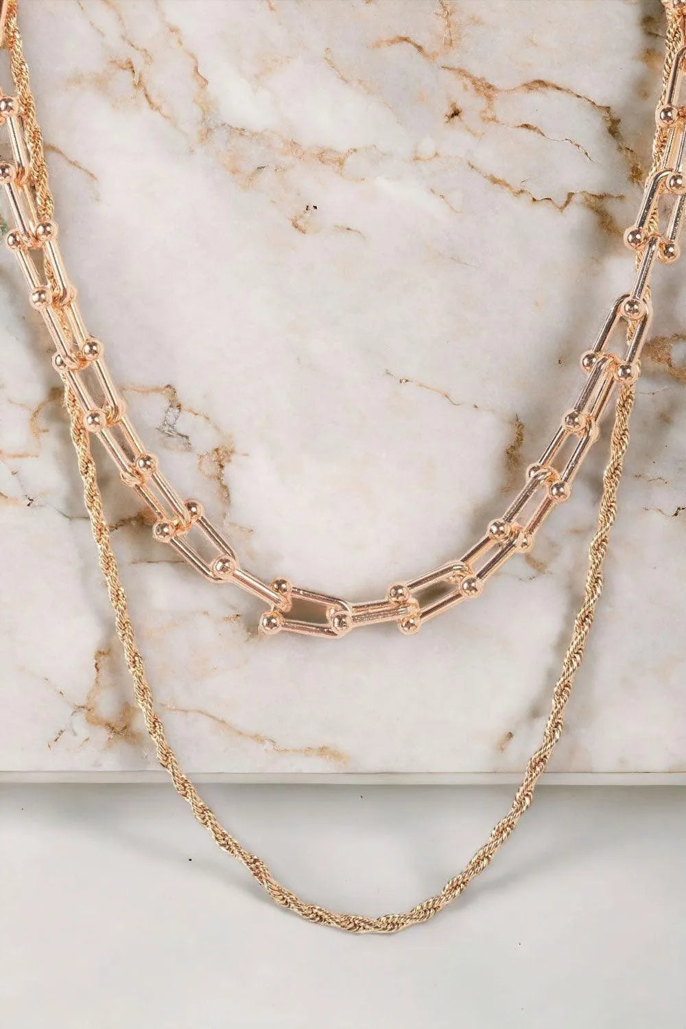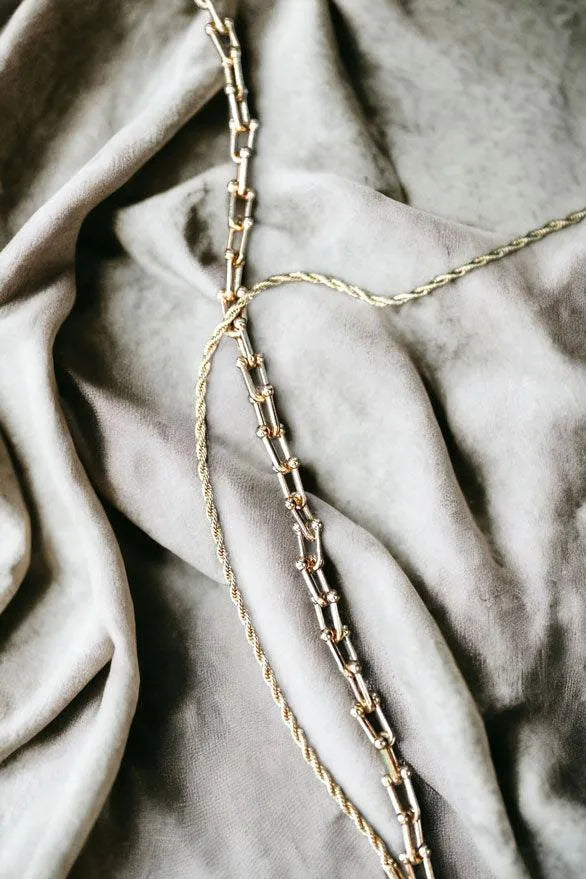 Gold Twisted And U Link Chains Set Necklace