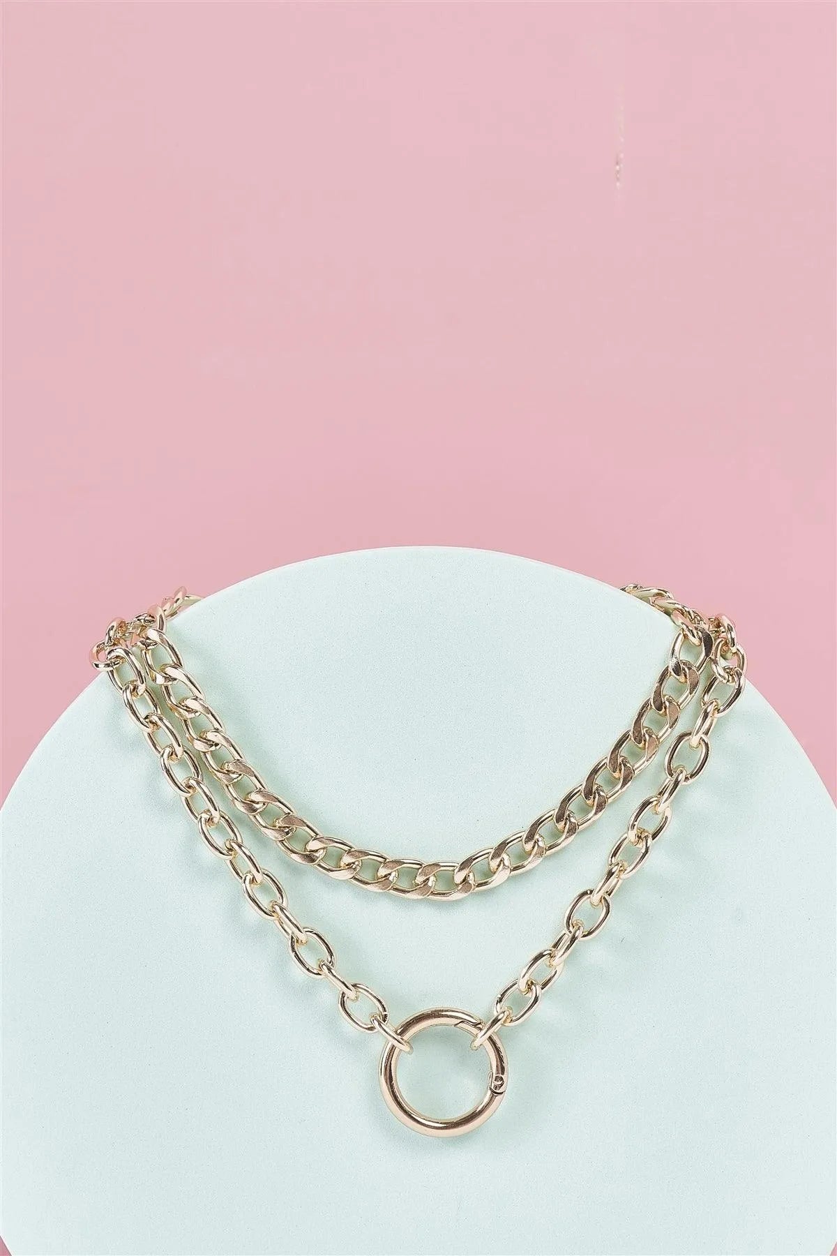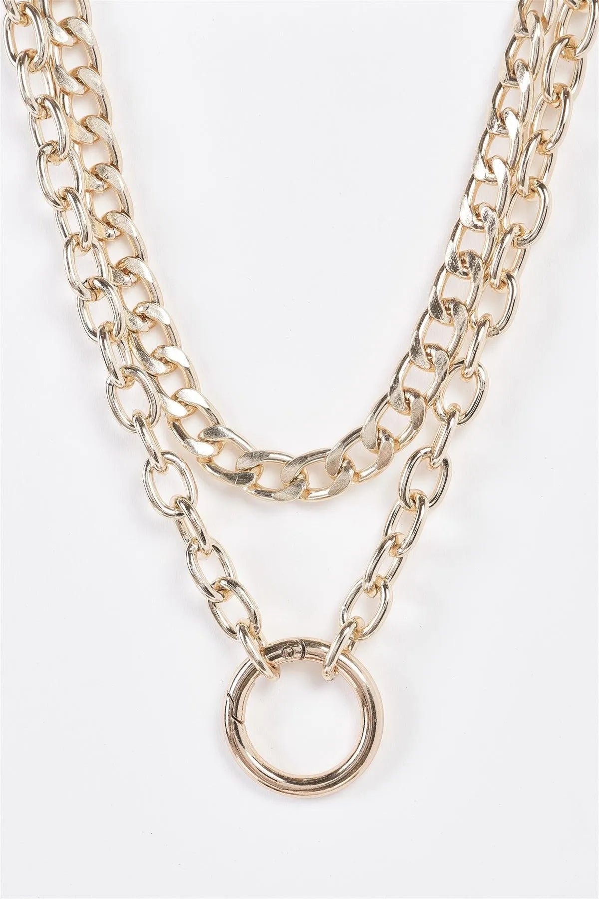 Gold Two Massive Chain Clasp Pendant Necklace