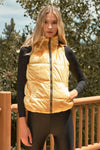 Gold Velvet Sleeveless High Neck Hooded Puffer Vest /1-1-1-1