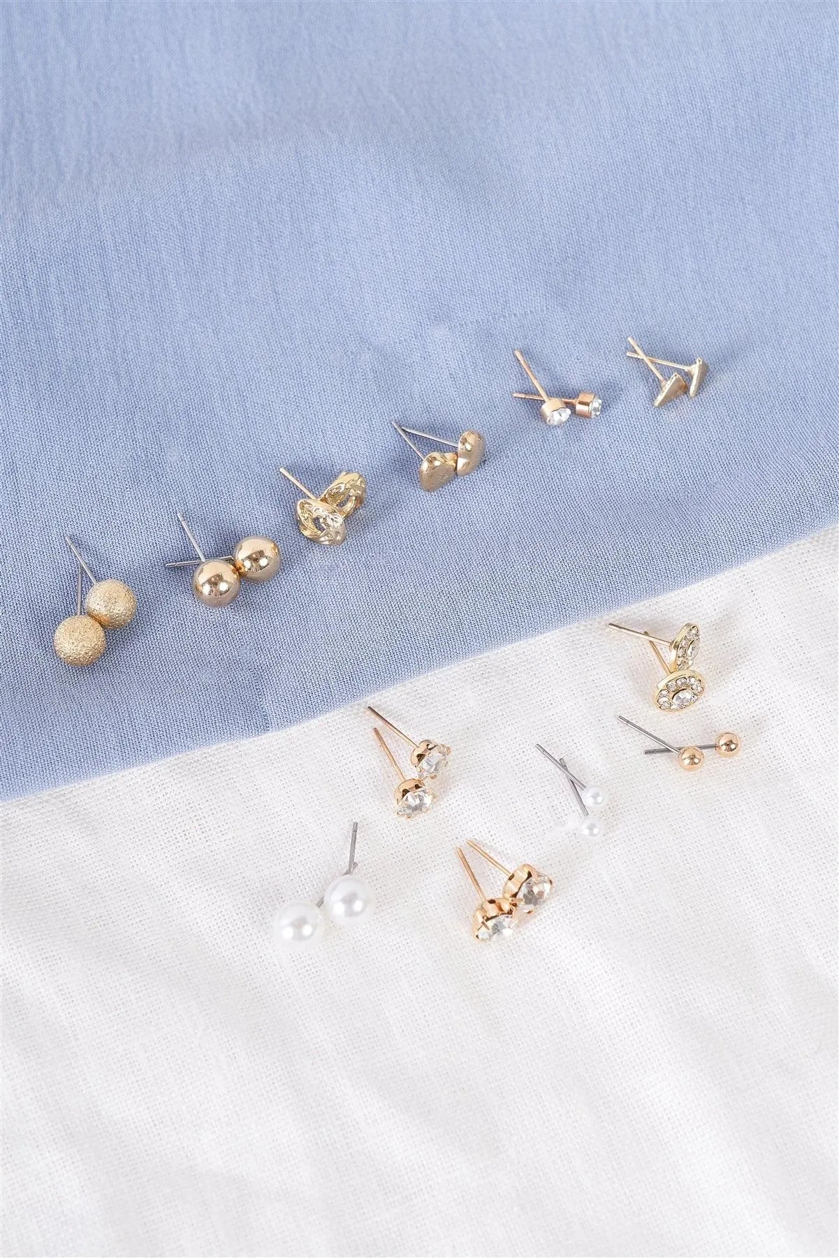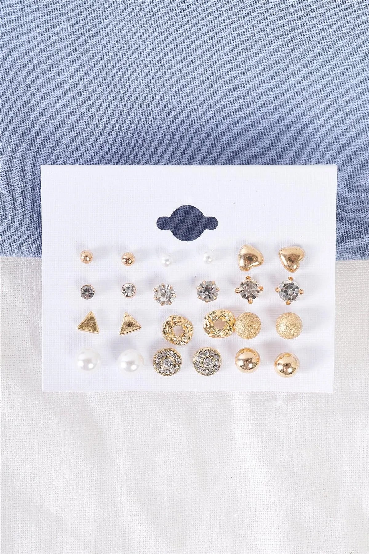 Gold Verity Stud Earrings Set of 12 Pairs /3 Packs