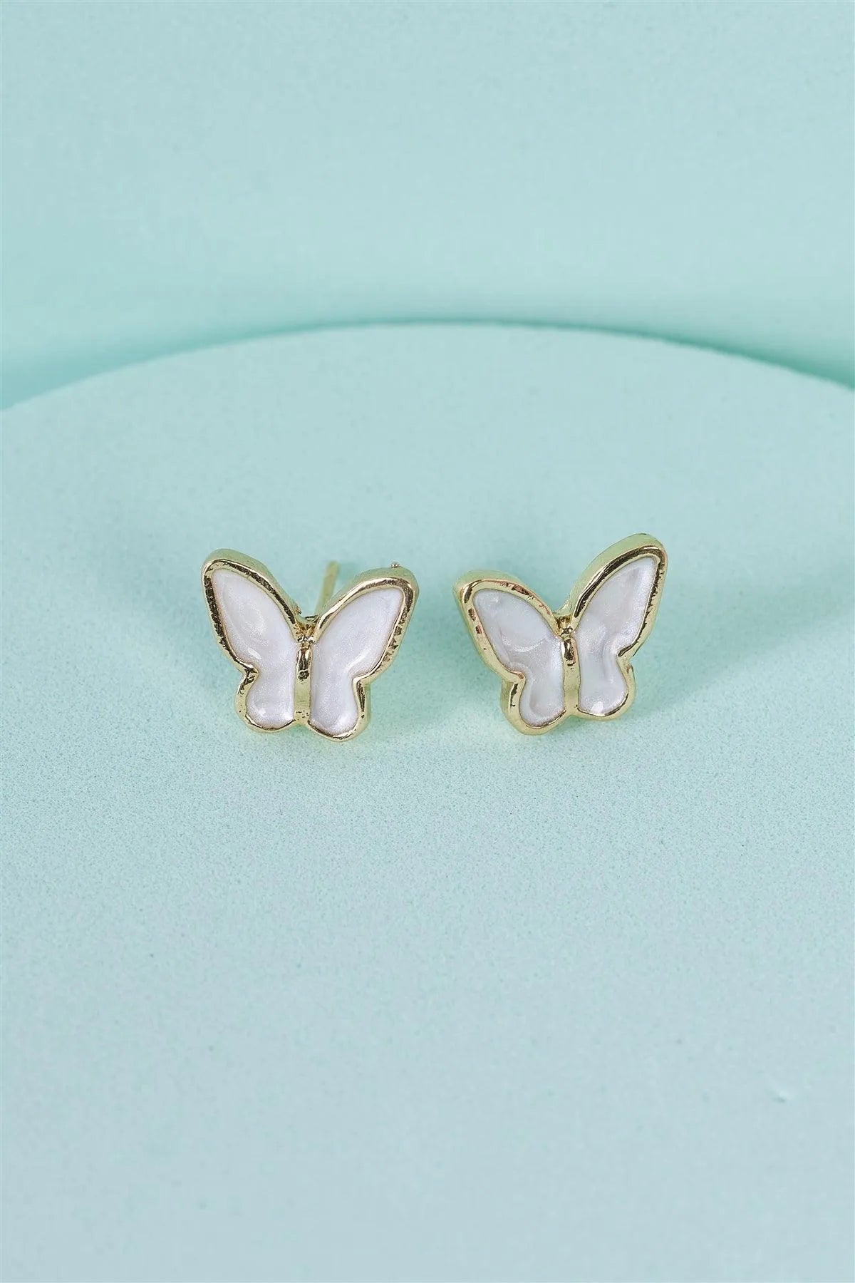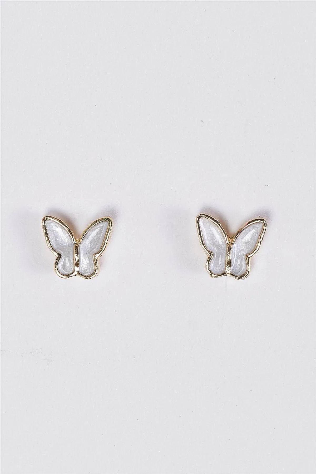 Gold & White Butterfly Shaped Stud Earrings /3 Pairs