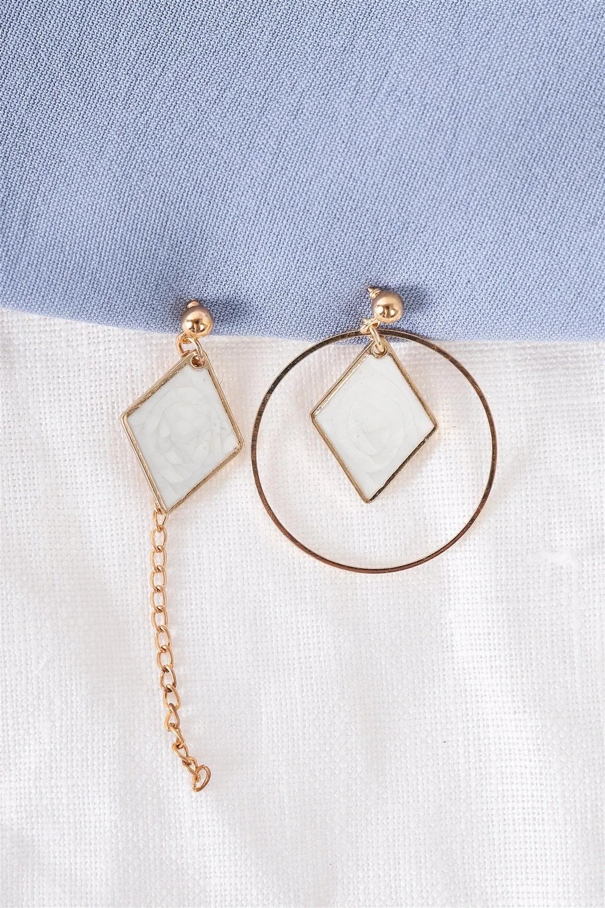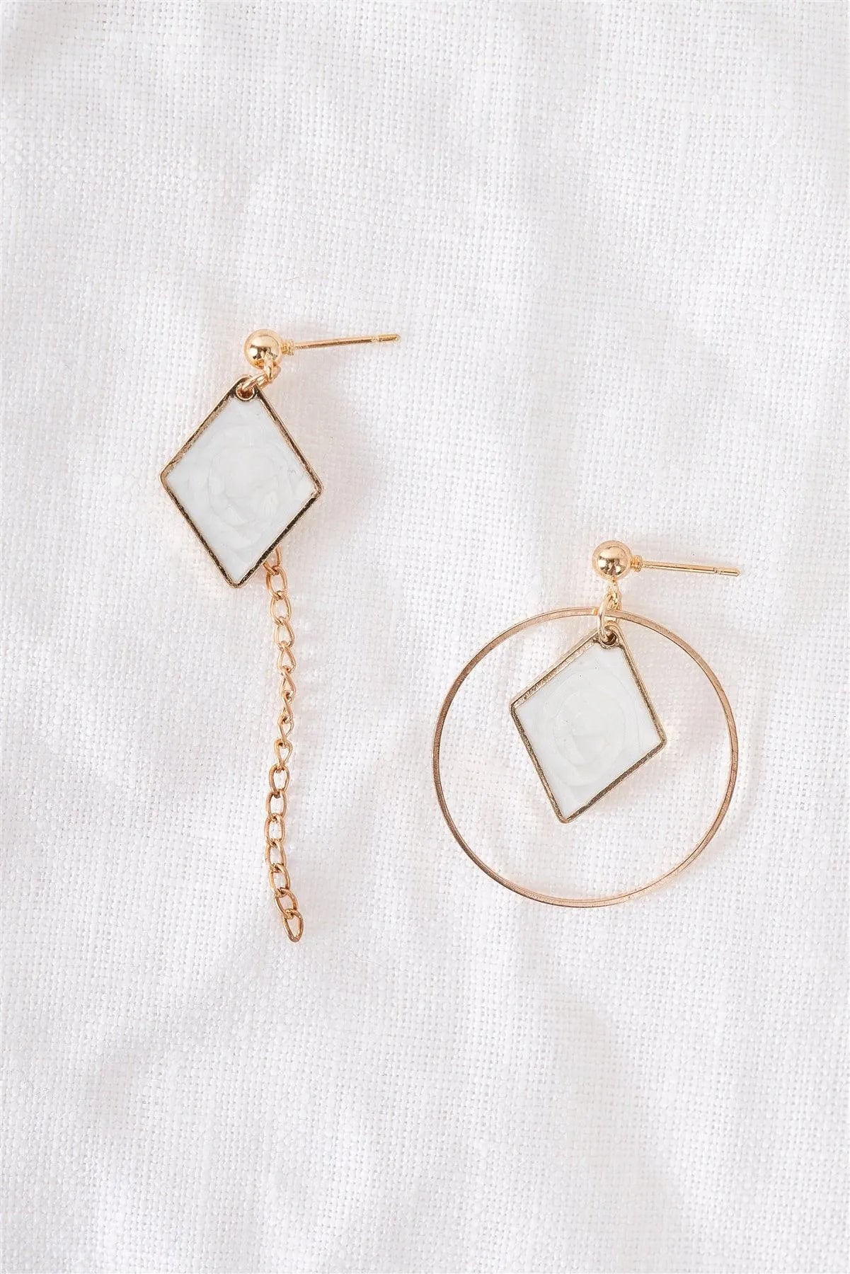Gold & White Rhombus Asymmetrical Earrings