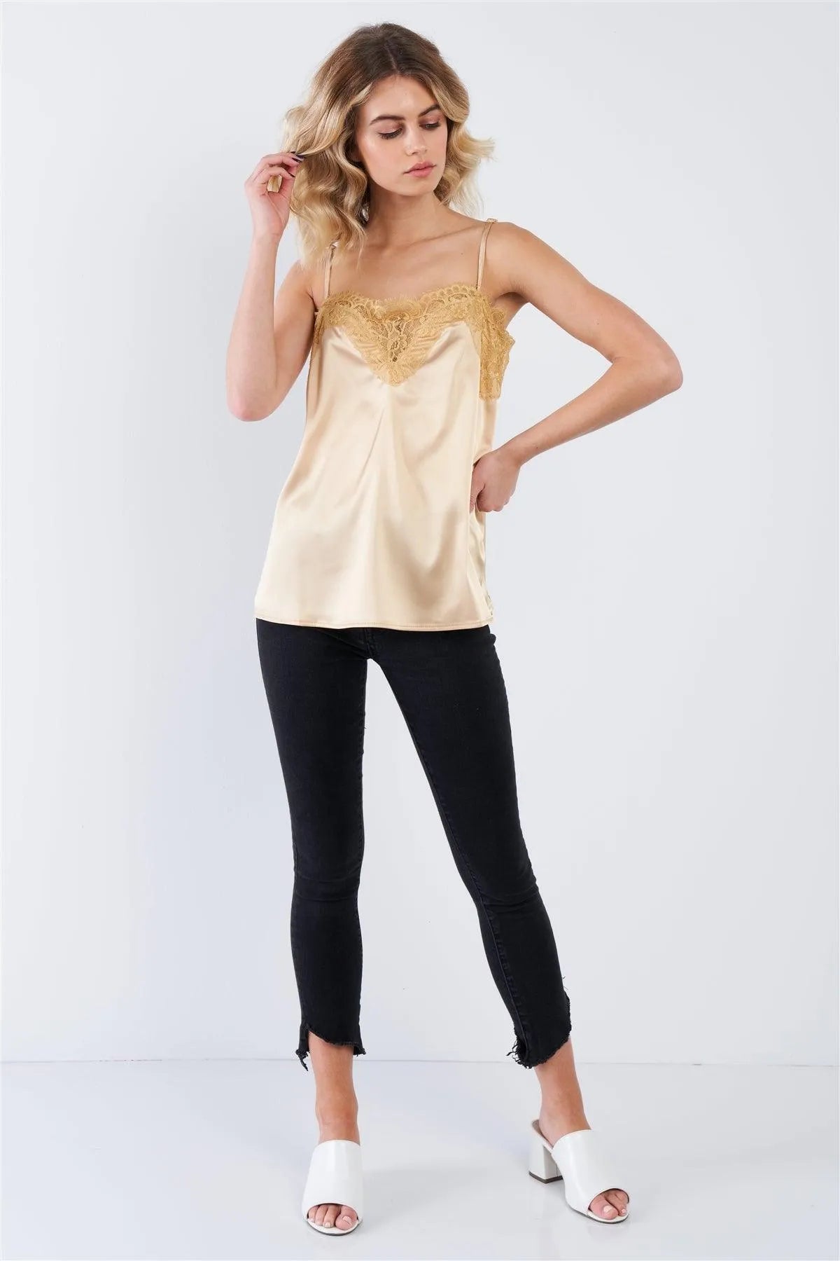 Golden Yellow Satin Lace V-Neck Adjustable Cami Top /3-2-1