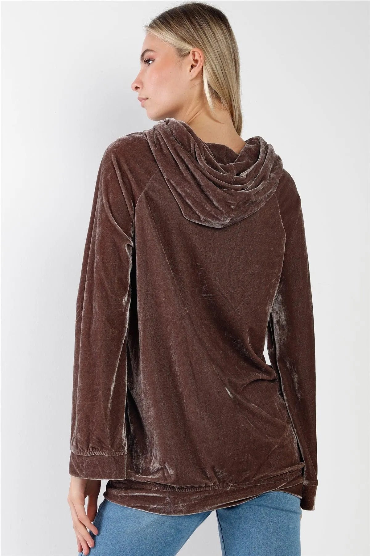 🖤 Sweater features: Rust, glossy velvet texture, long wide cuffed kimono sleeves, hooded, adjustable wide drawstrings, oversized fit, front pockets, front embroidered graphic letters, front zipper up, cuffed bottom, non-stretchy, unlined, soft to touch, stylish, trendy, streetwear, lifestyle, seasonal must have🖤 Available in other colors: Rust and Navy Blue