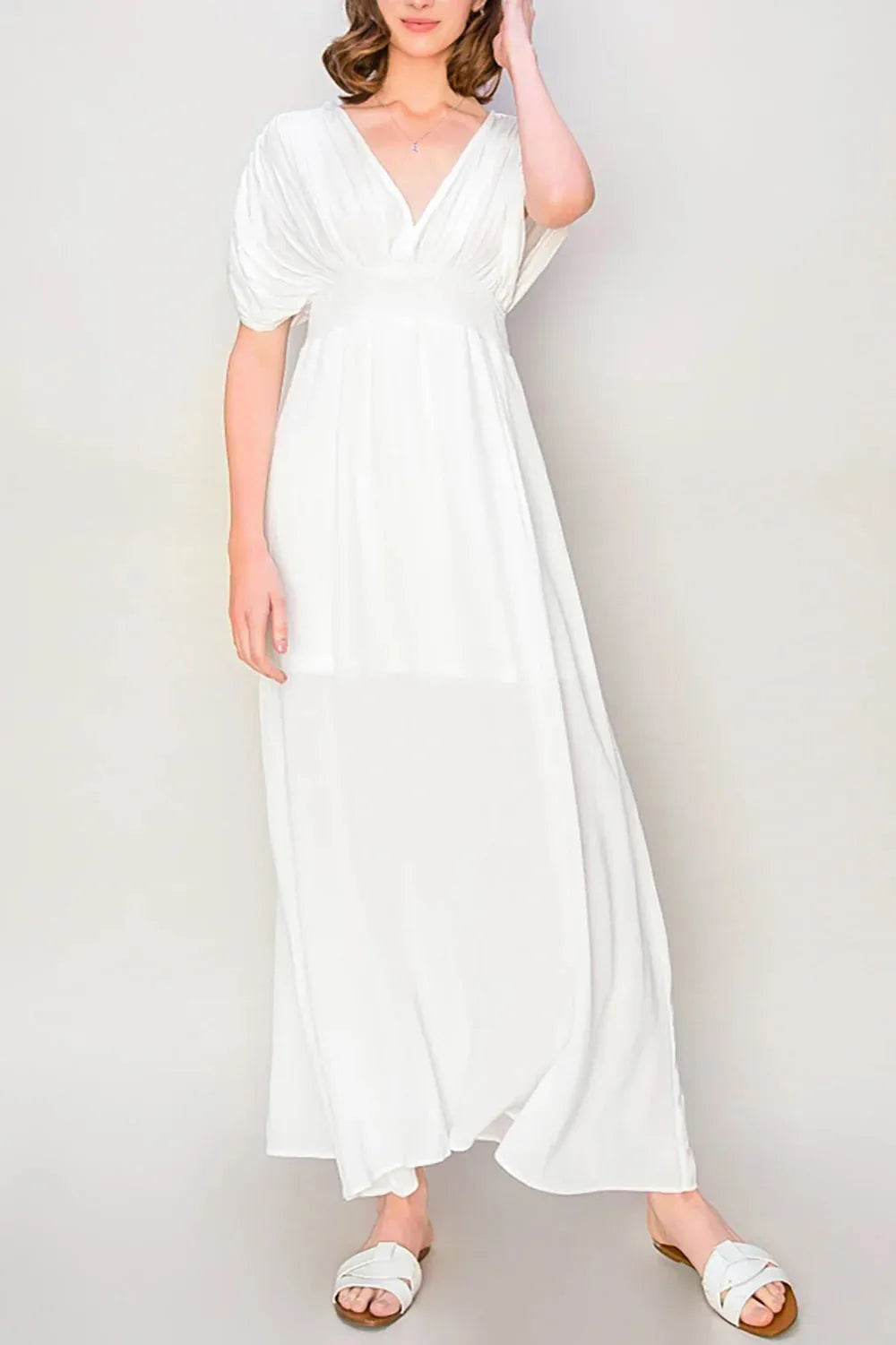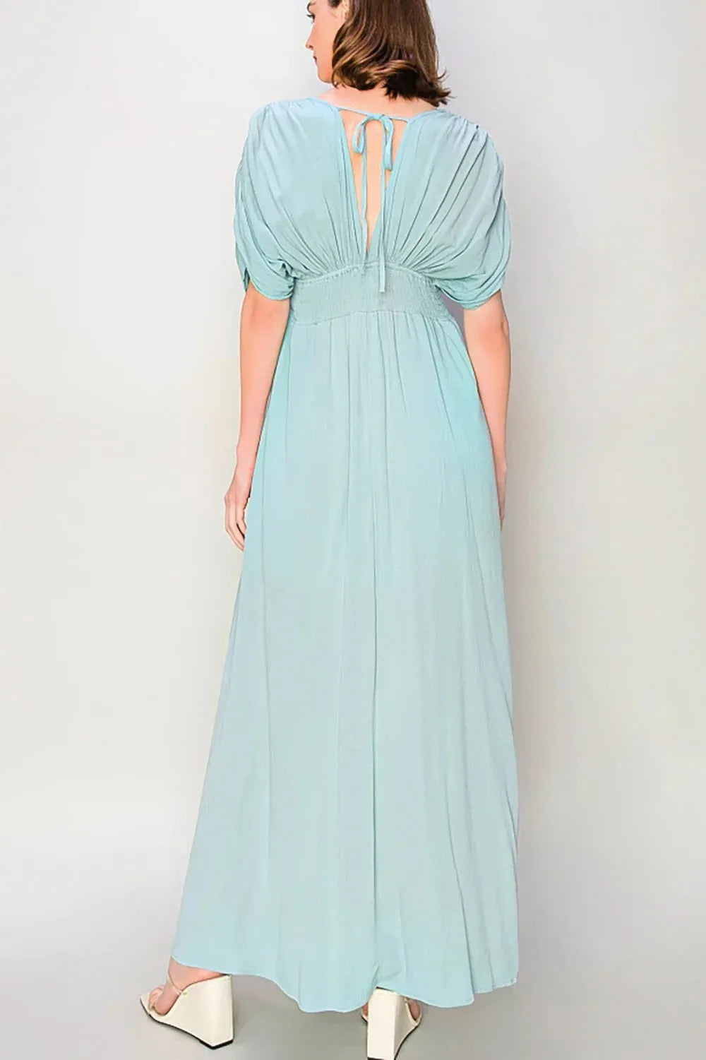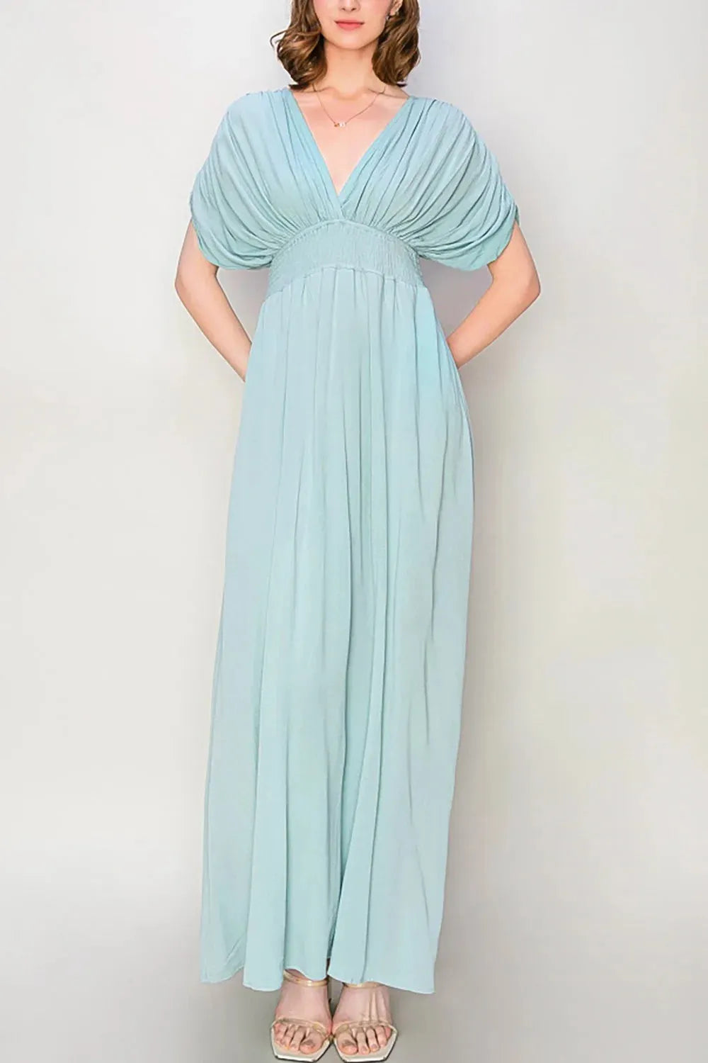 Dreamy Grecian Empire Waist Lightweight Pleated Bodice Maxi Dress