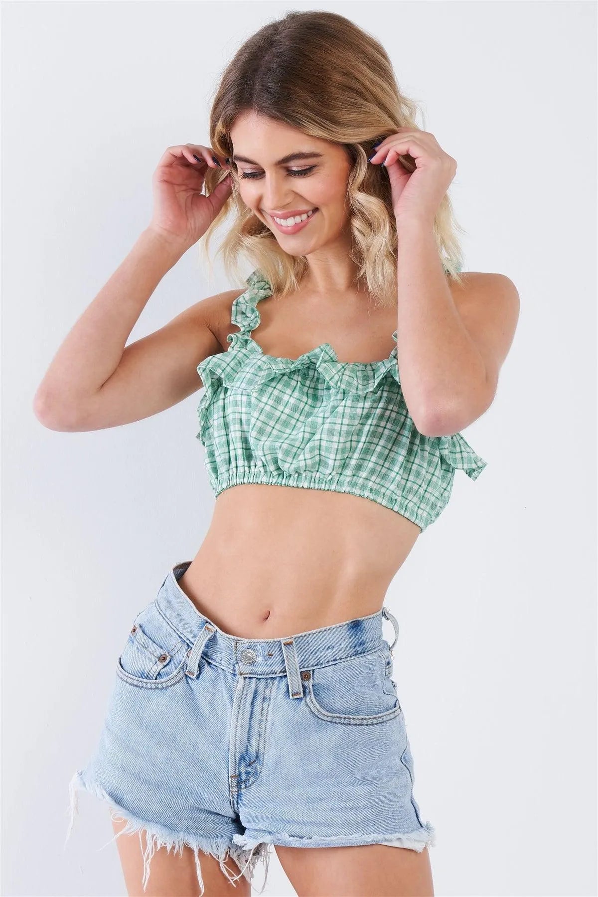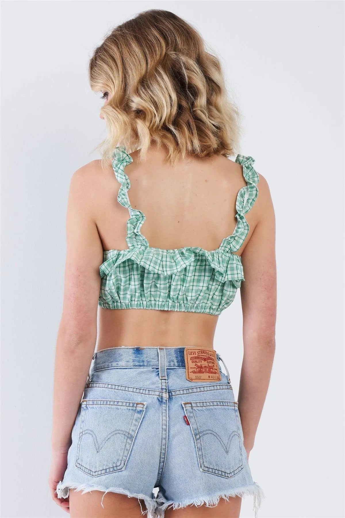 Green Cotton Multi Stripe Frill Trim Crop Top /3-2-1