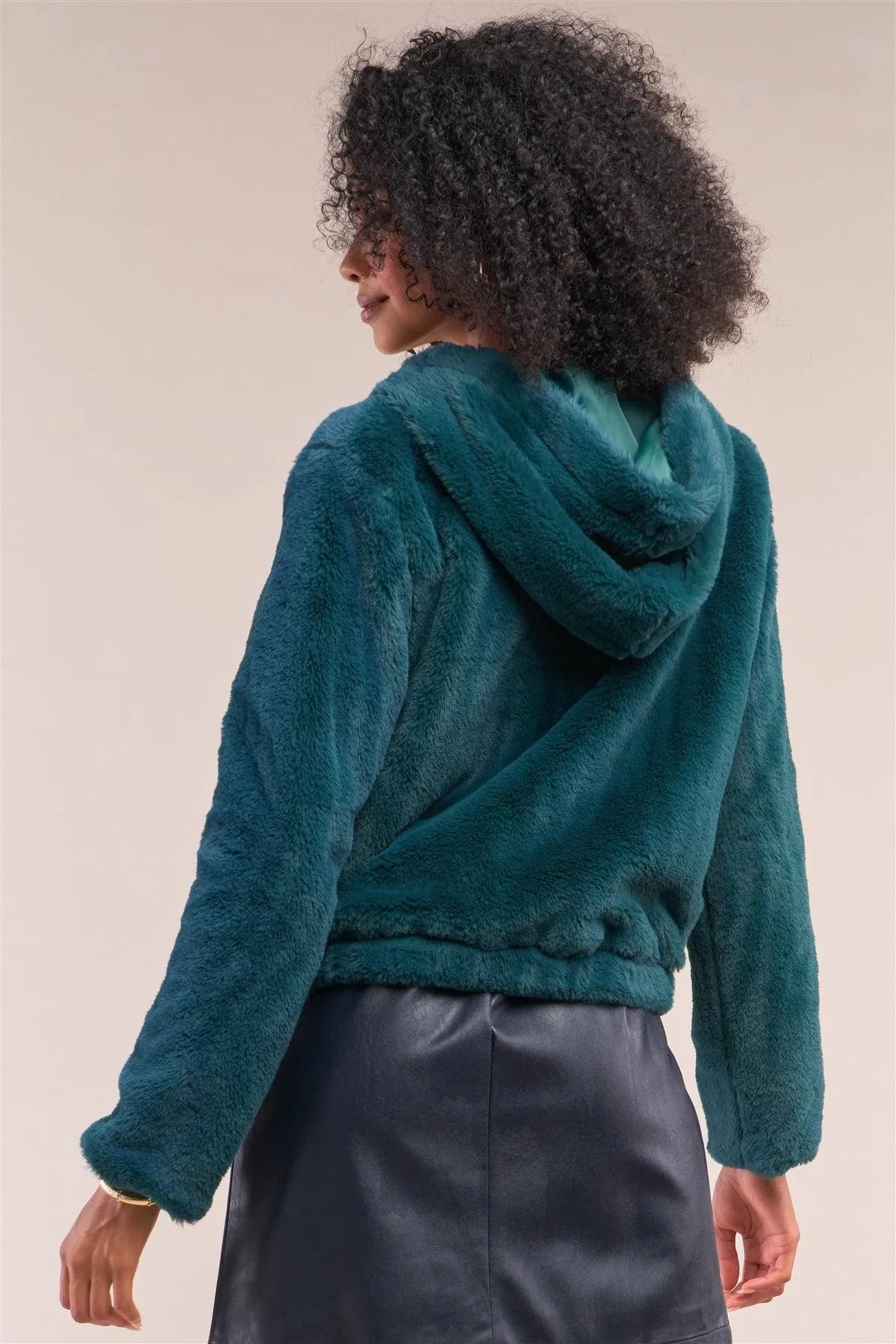 Green Soft Faux Fur Hooded Zip-Up Jacket /3-3