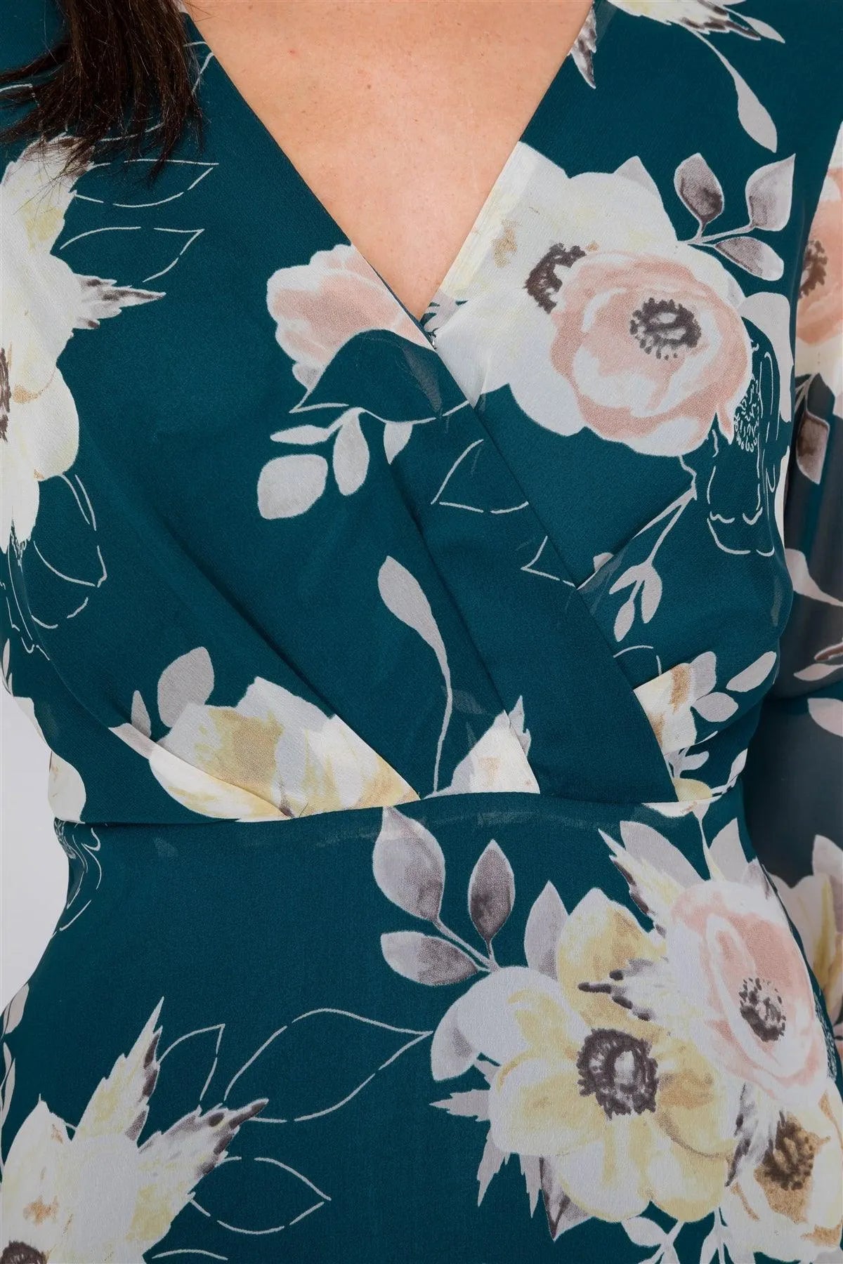 Abstract Print Wrap Bust Long Sleeve Boutique Fashion Chiffon Maxi DressVendor:One The Land