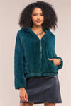 Green Soft Faux Fur Hooded Zip-Up Jacket /2-2-2