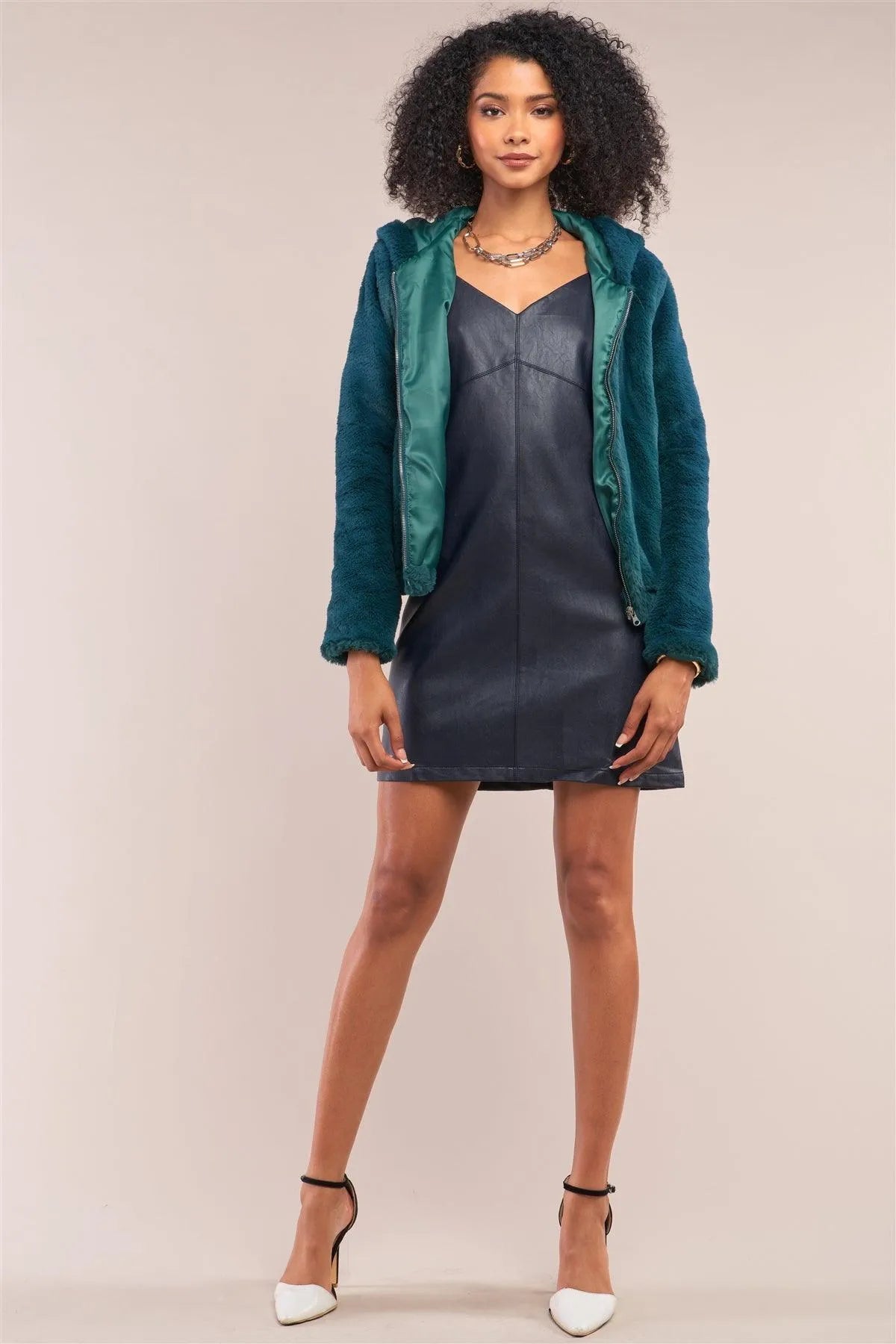 🖤 Item Features: Green, soft, faux fur, zip-up front, hooded neckline, long sleeves, two side pockets, lined, casual, outerwear, accent piece, cozy, stylish, trendy, vegan, new fall/winter collection