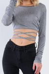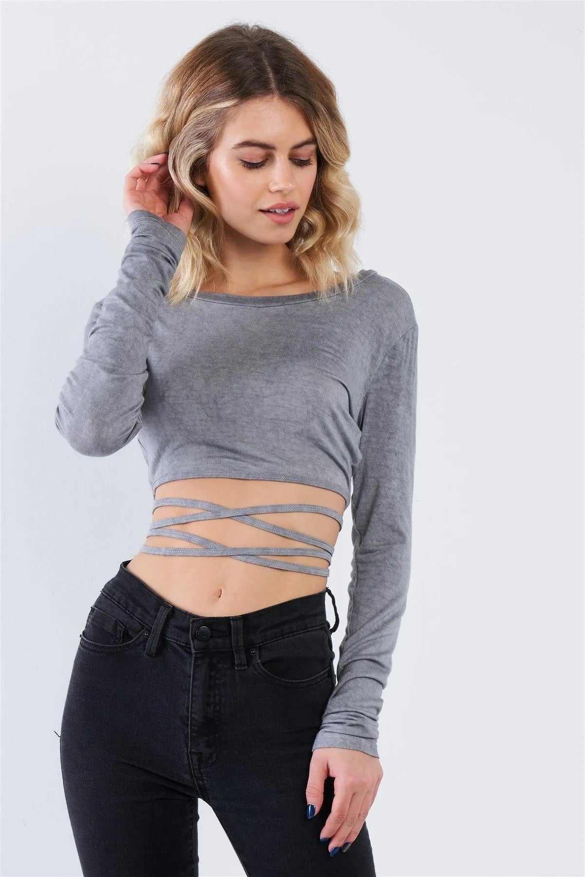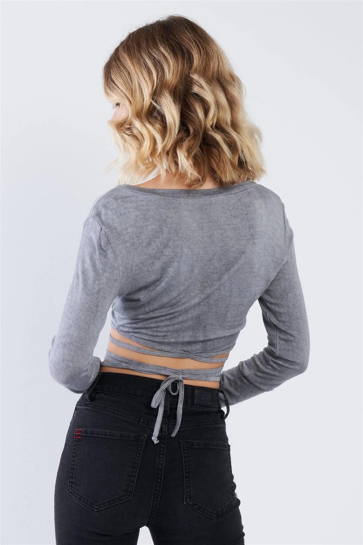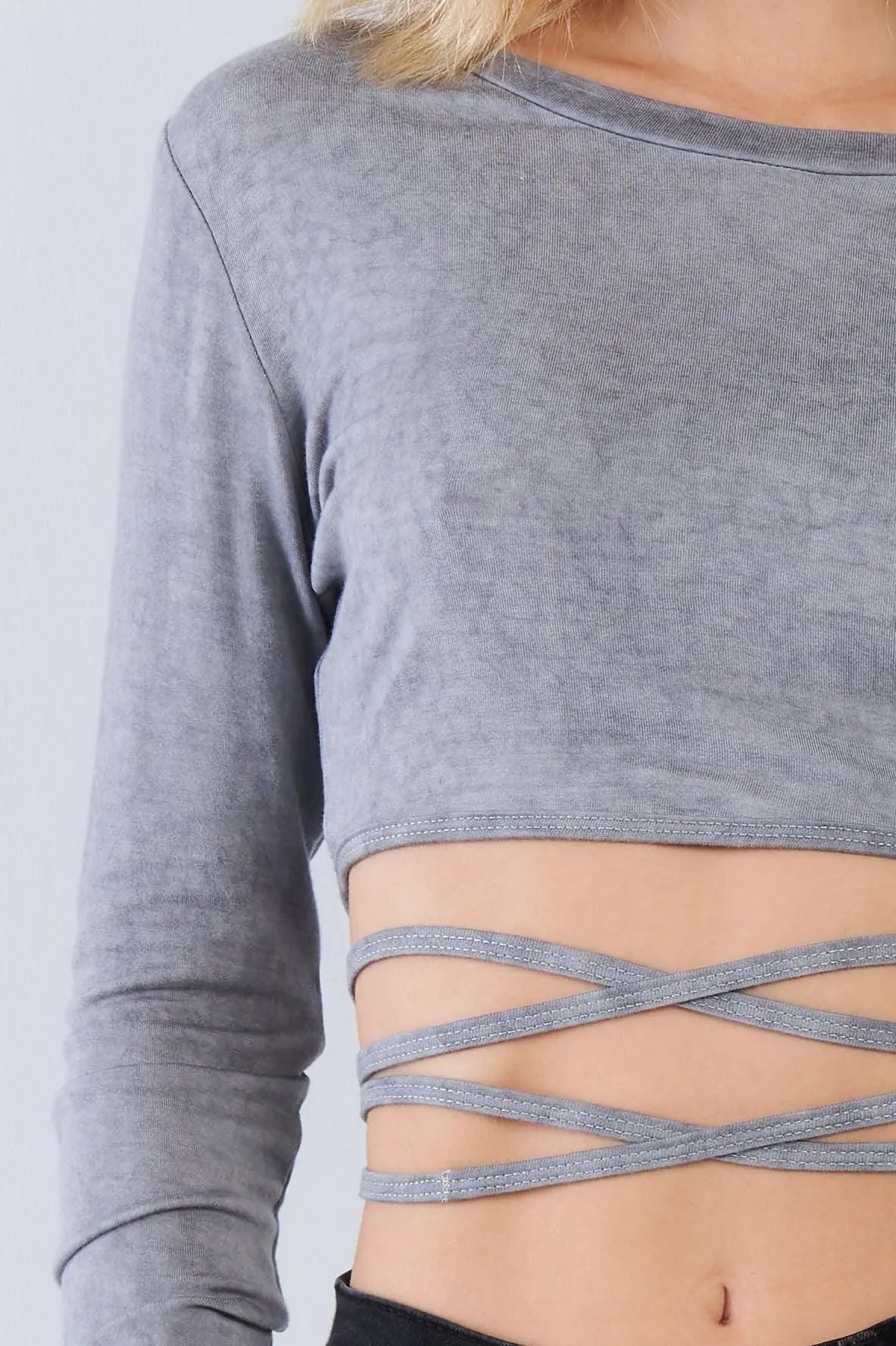 Grey Acid Wash Waist Tie Crop Top /3-2-1