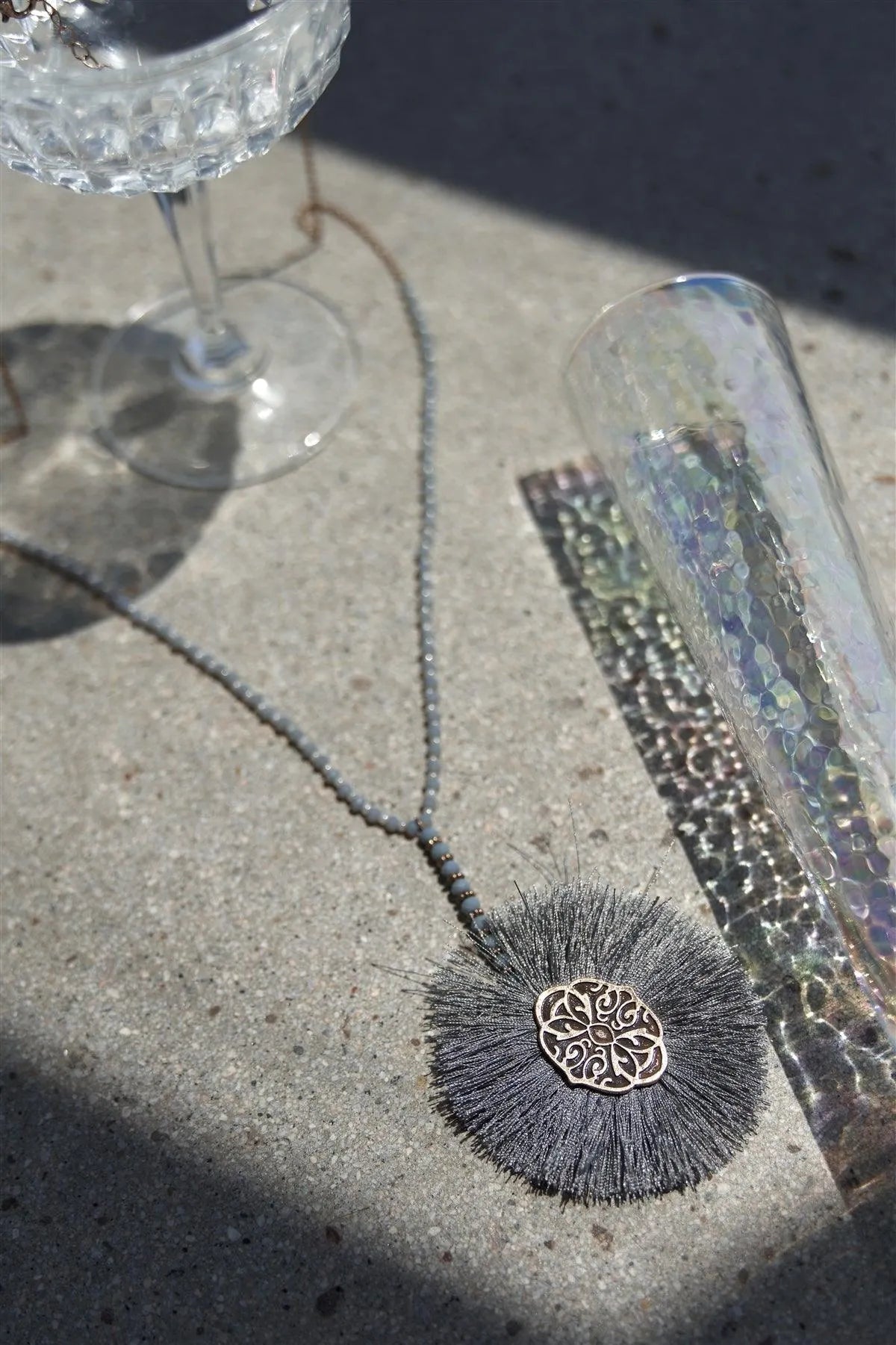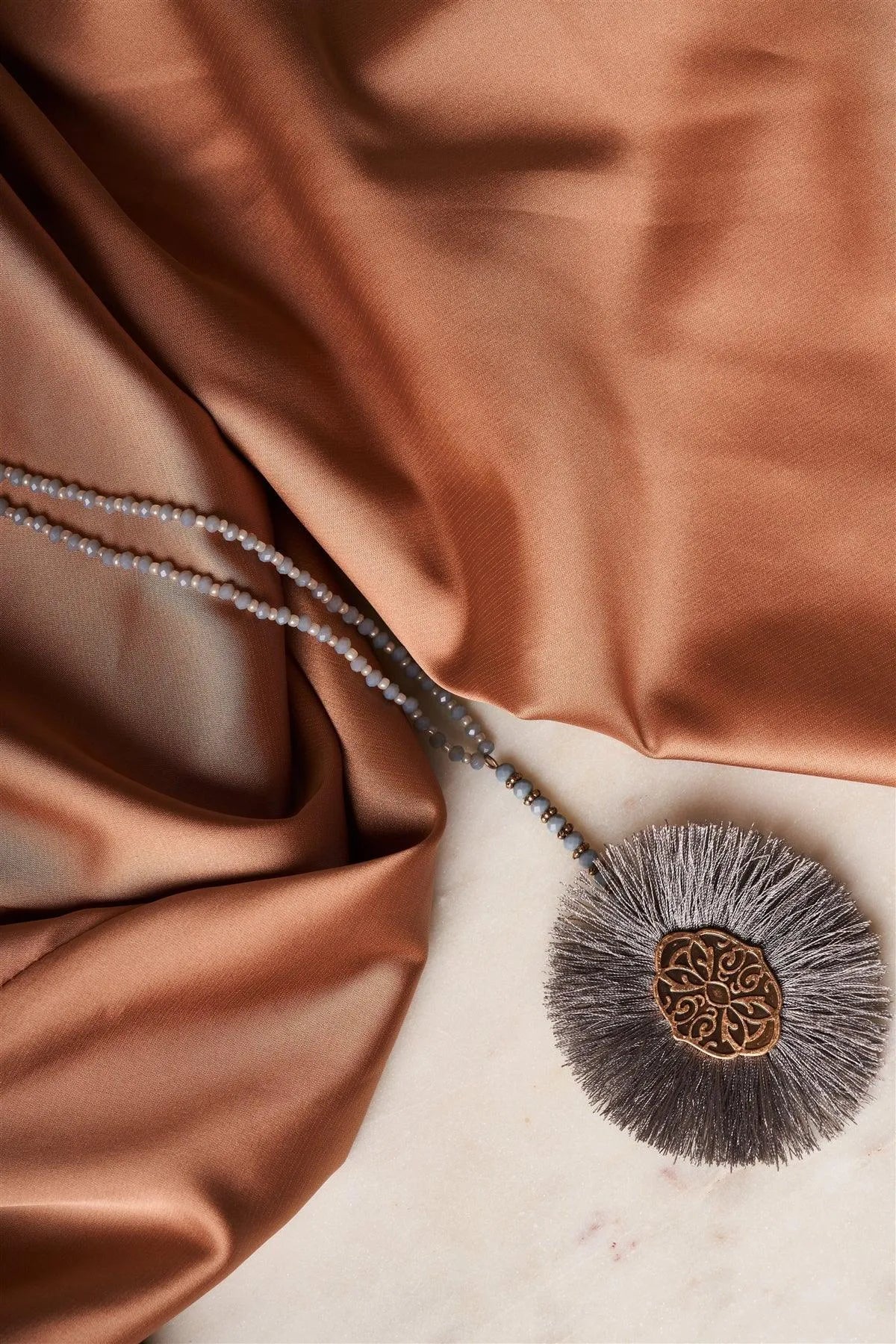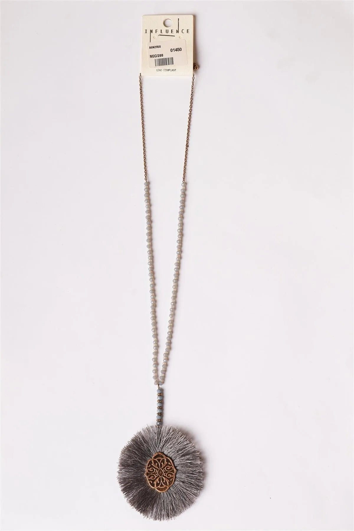 Grey Etched Tassel Pendant Necklace /3 Pieces