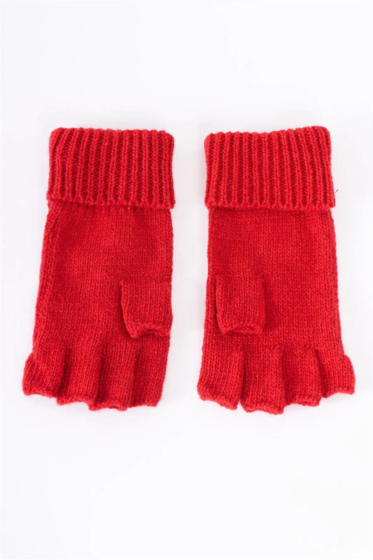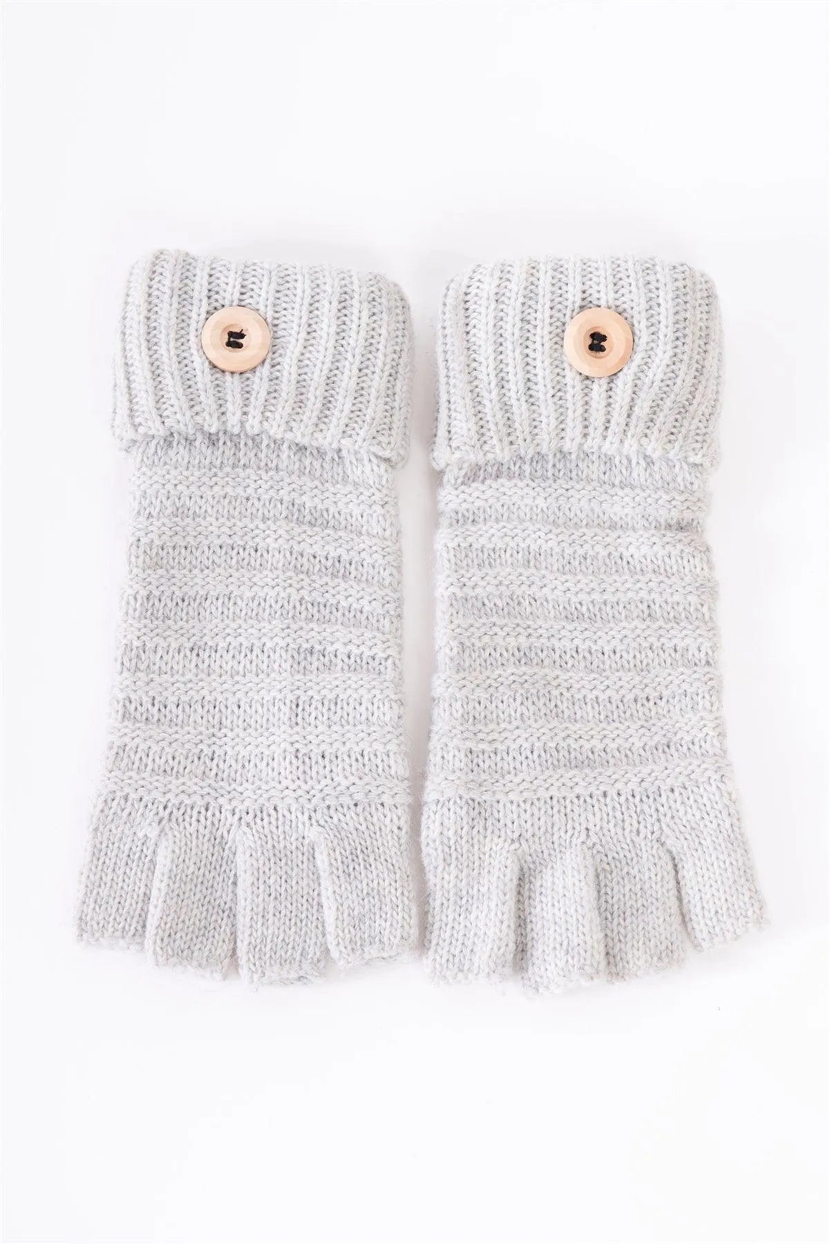 Grey Fingerless Button Detail Knit Winter Gloves /3 Pieces