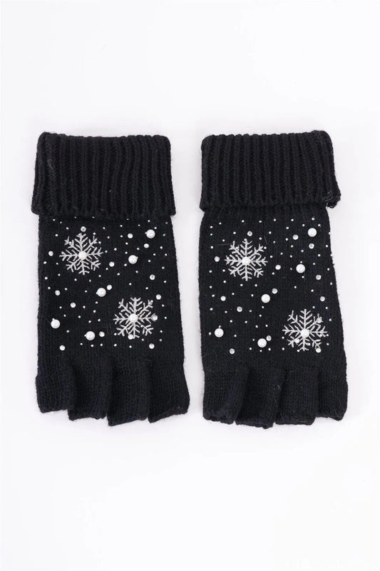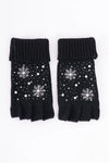 Black Fingerless Snowflakes Pearl Rhinestone Winter Gloves /3 PiecesVendor:Fame