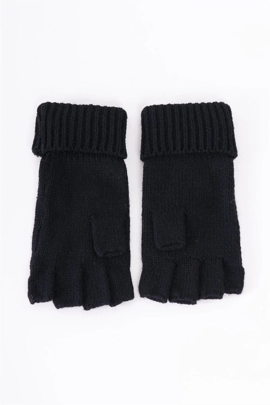 Black Woven Furry Fingerless Two-Way Winter Gloves /3 PiecesVendor:Fame