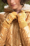 Mustard Fingerless Snowflakes Pearl Rhinestone Winter Gloves /3 PiecesVendor:Fame
