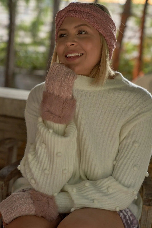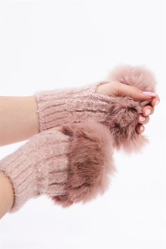 Pink Woven Furry Fingerless Two-Way Winter Gloves /3 PiecesVendor:Fame