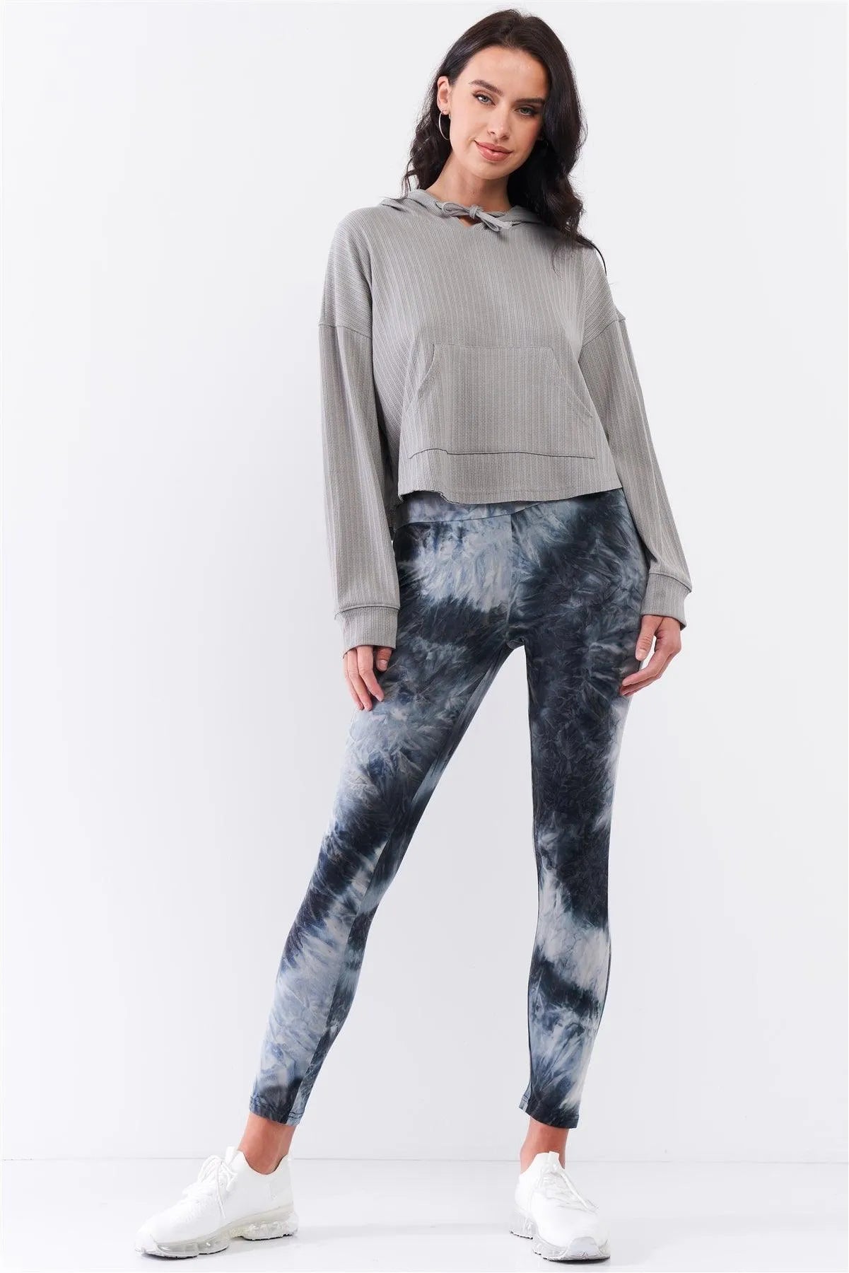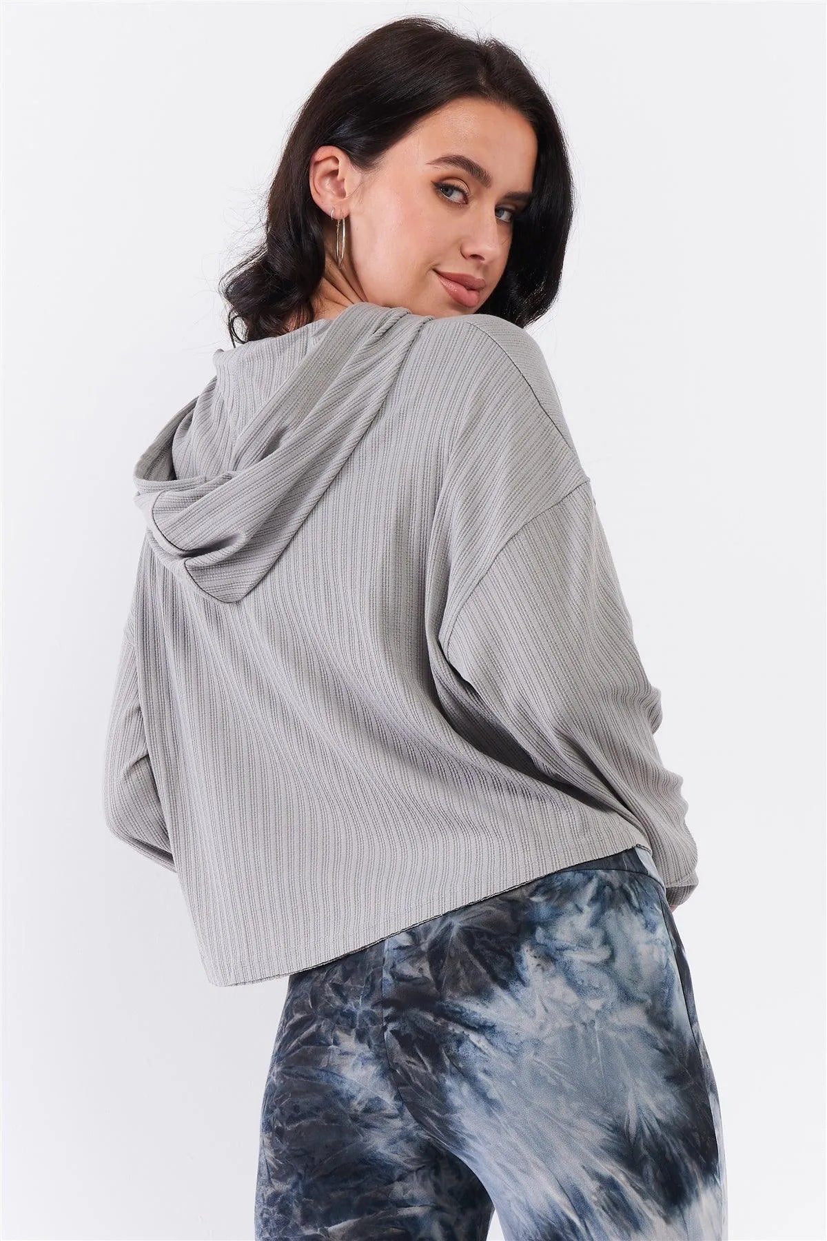 Stone Grey Knit Long Sleeve Kangaroo Pocket Detail Hooded Sweatshirt /3-2-1