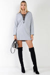 Grey Long Sleeve Graphic Trim Lace-Up Sweater Dress /2-2-2