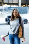 🖤 Item Features: Grey, solid color, ribbed, twist front detail, long sleeves, round crew neckline, relaxed fit, soft to touch, basic, casual, easy to style, street style