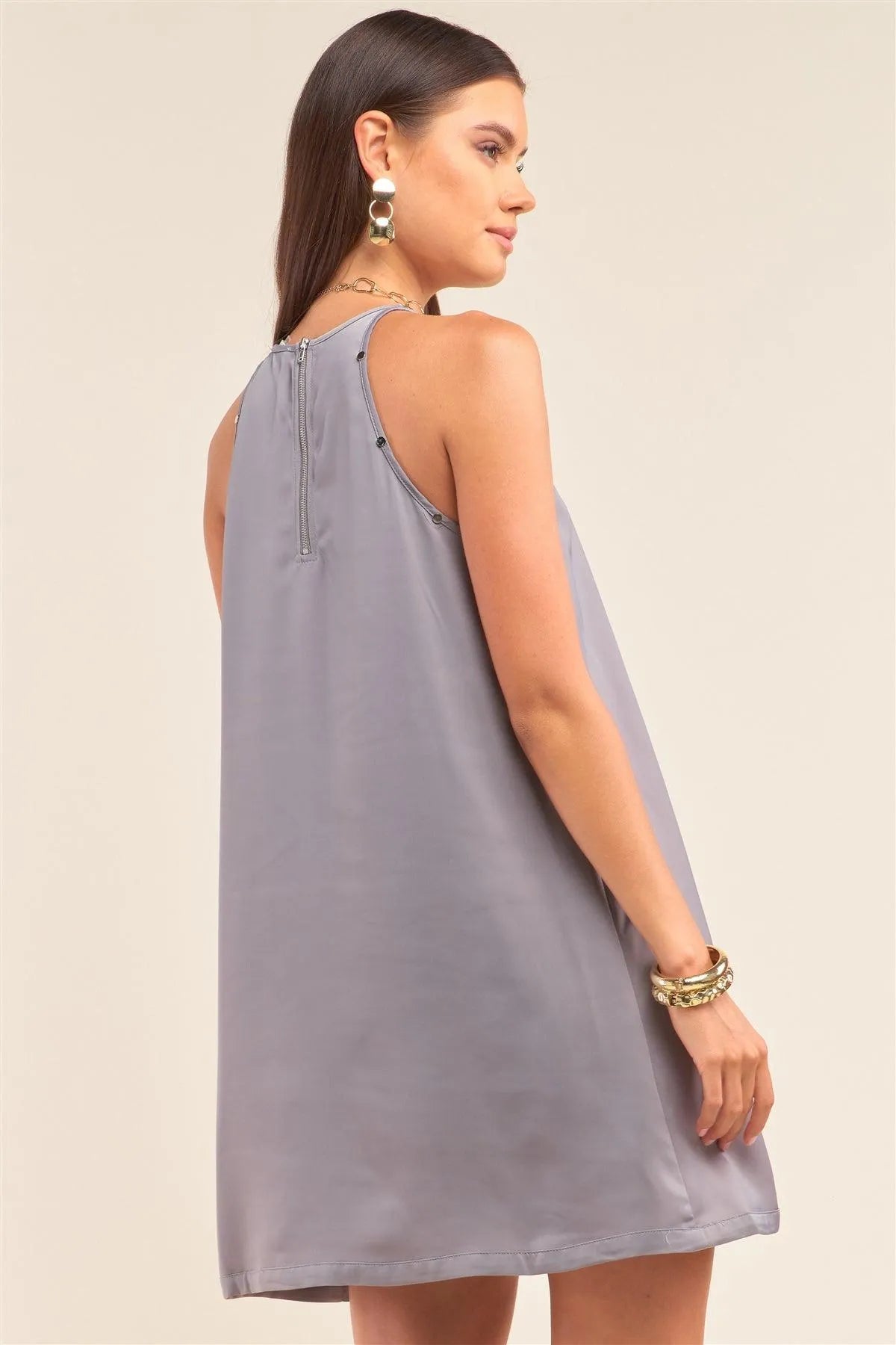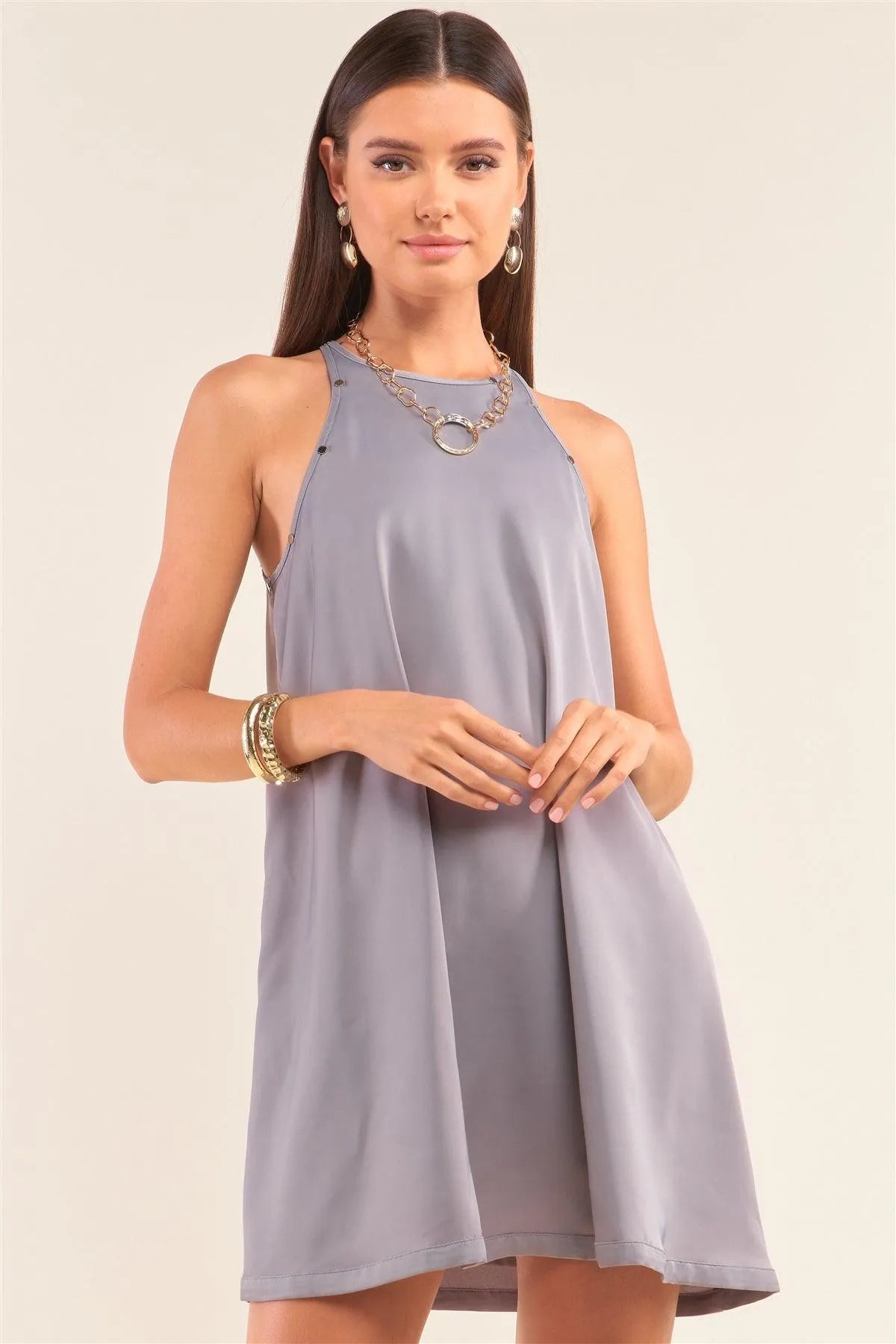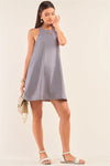 Grey Sleeveless Halter Neck Studded Detail Mini Dress /1-2-2-1