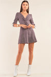 Charcoal Grey Suede Deep Plunge V-Neck Gathered Detail Tight Fit Mini Dress /1-2-1